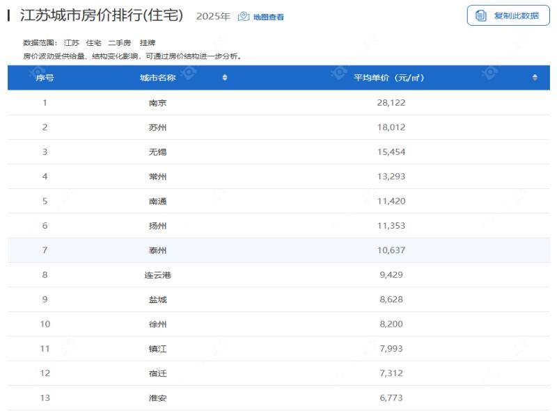 江苏各城市2025年度房价排行,区域分化格局凸显