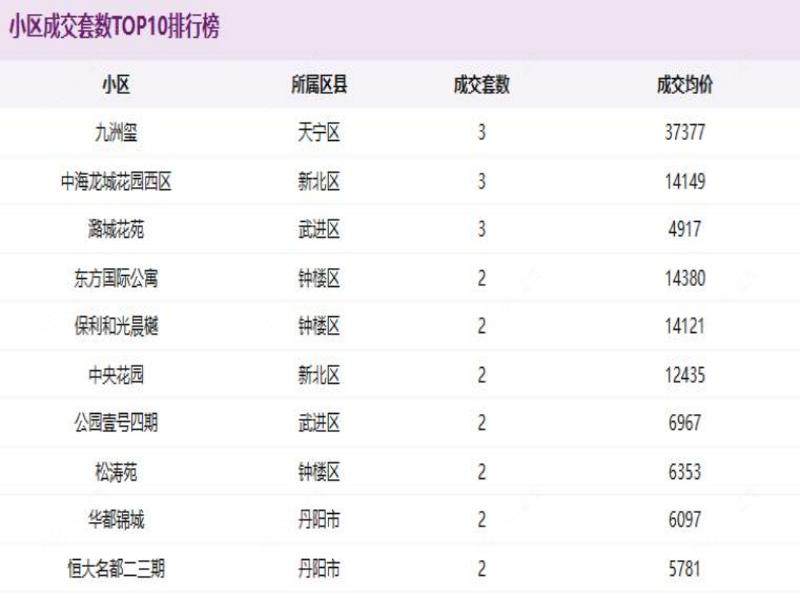 12月第1周常州二手房成交排行,这三个小区位居前列