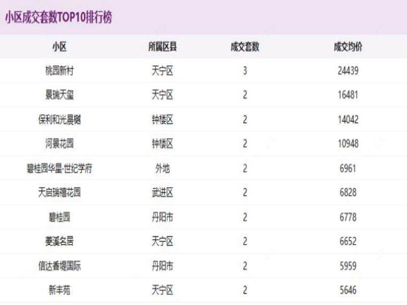 1月第一周常州二手房成交排行,价格分层,刚需主导