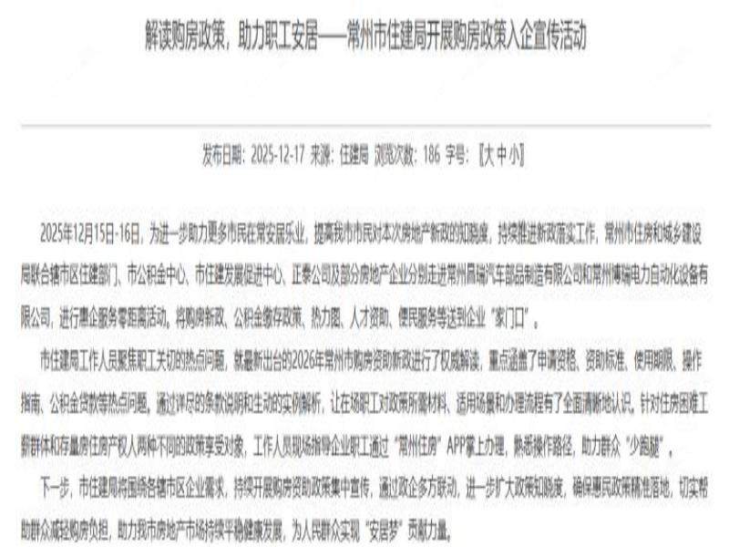 近期,常州市住房和城乡建设局通过多维度政策宣传活动,提升市民对购房新政的知晓度,助力房地产市场平稳健康发展。下面我们结合政策动态与本地市场特征,解析政策落地效果及对购房者的实际意义。 2025年12...