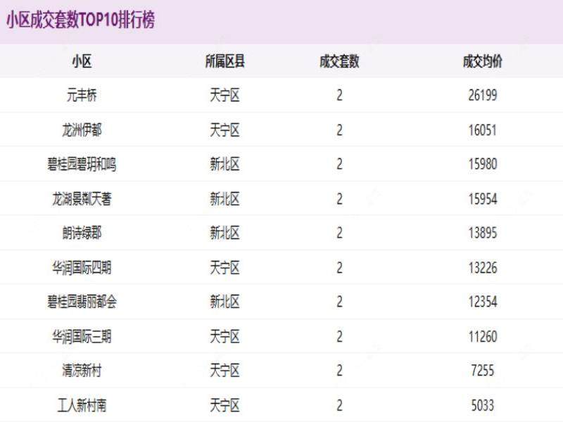 12月第2周常州二手房成交排行,天宁新北好房霸屏