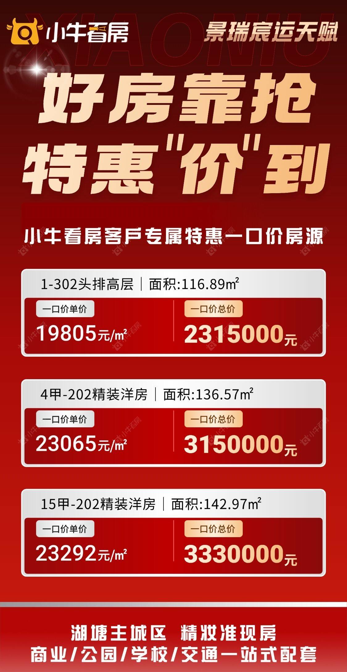 项目优惠近吾悦+万达!湖塘主城区 精妆好房实景呈现,品质交付有保障 小牛看房客户享额外1%优惠买宸运天赋,享优惠,找小牛看房
