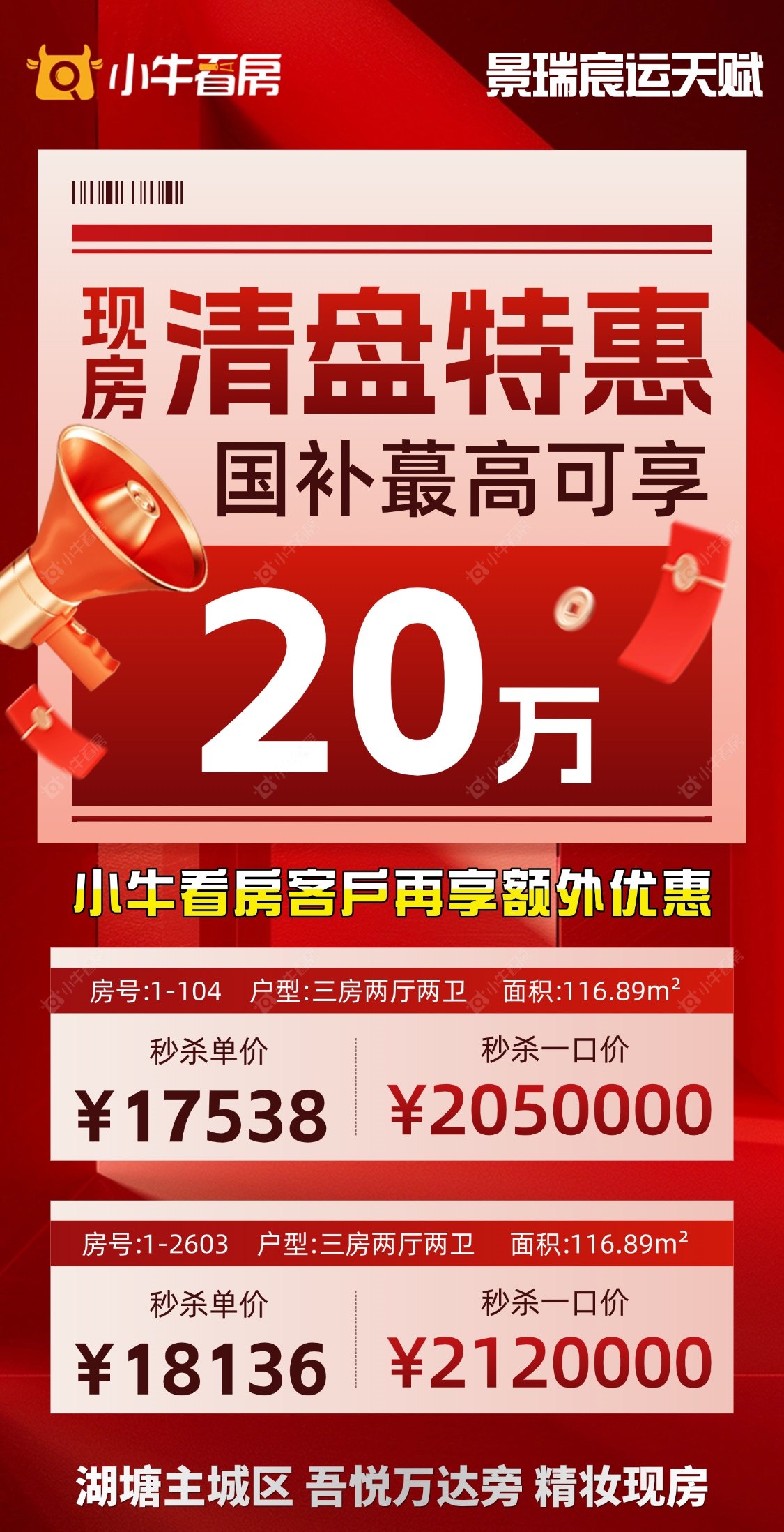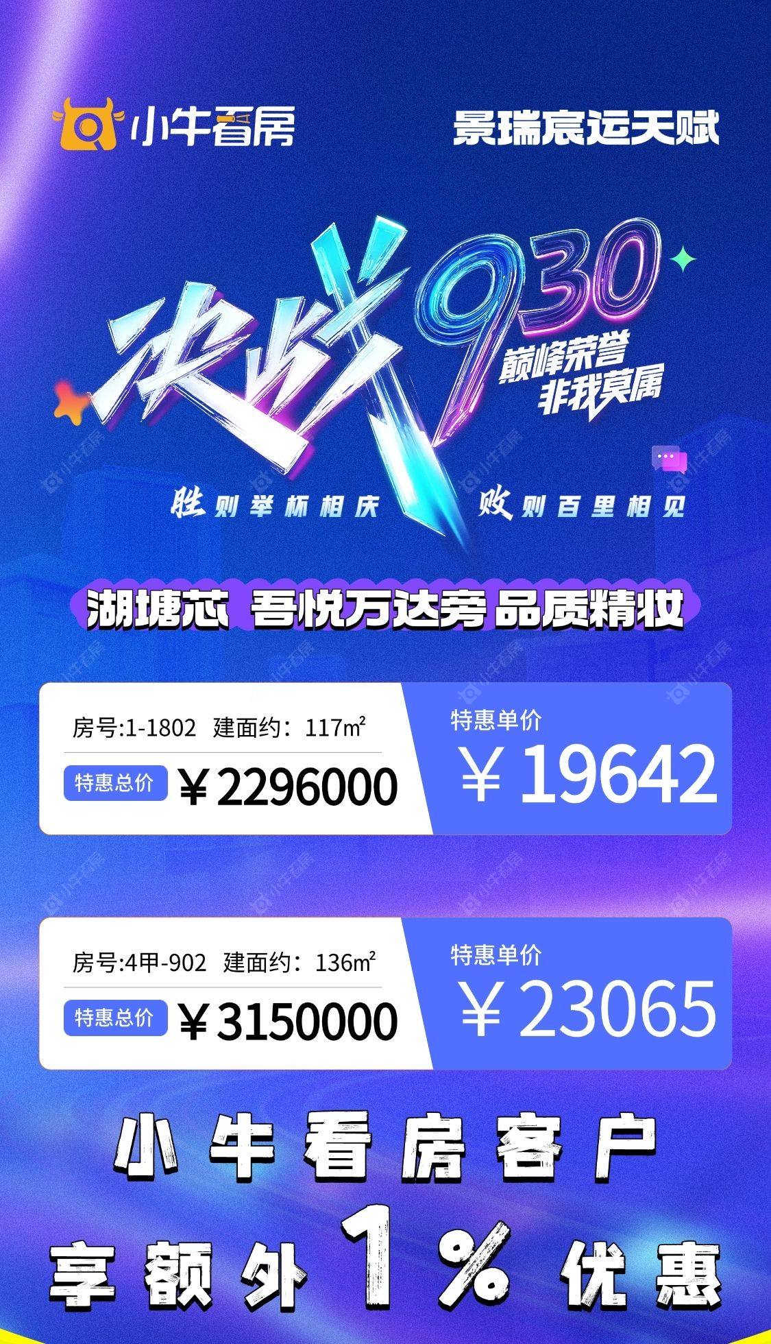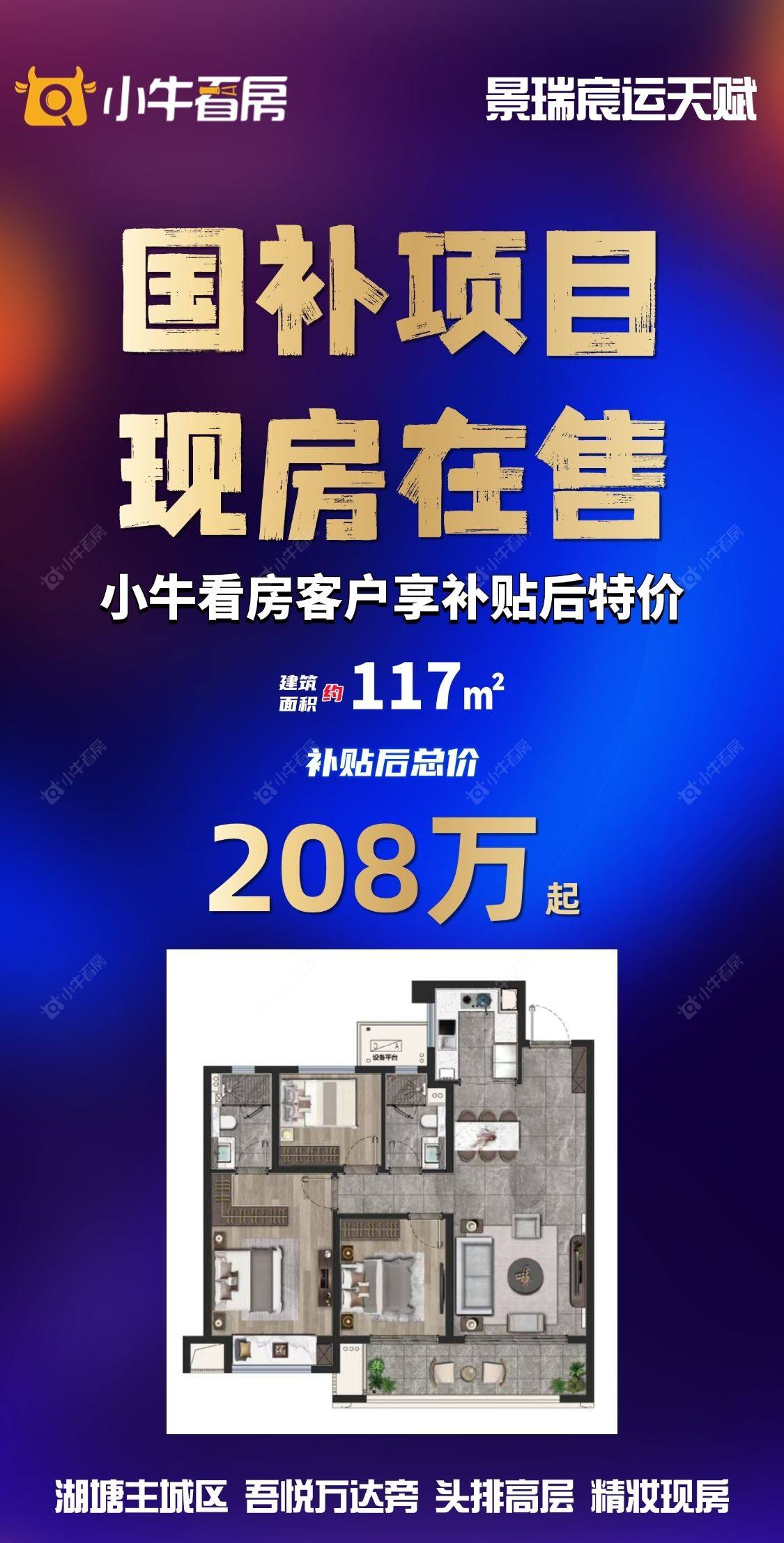 项目优惠湖塘主城区,吾悦万达旁 品质交付,实景可鉴,可国补 小牛看房客户再享额外优惠 买景瑞新房享优惠找 小牛看房
