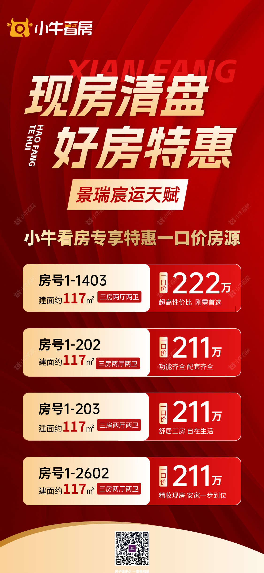 项目优惠湖塘主城区 吾悦万达旁 精妆高层清盘特惠,实景现房品质可鉴 小牛看房客户再享额外优惠 买宸运天赋,享优惠,找小牛看房