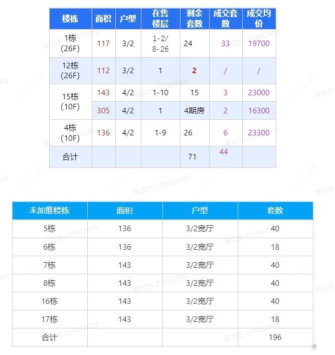 在售动态主力在售 一期精装高层现房1#(117户型)均价19700元/㎡ 二期精装洋房 4#15# (136-143户型)均价23800元/㎡