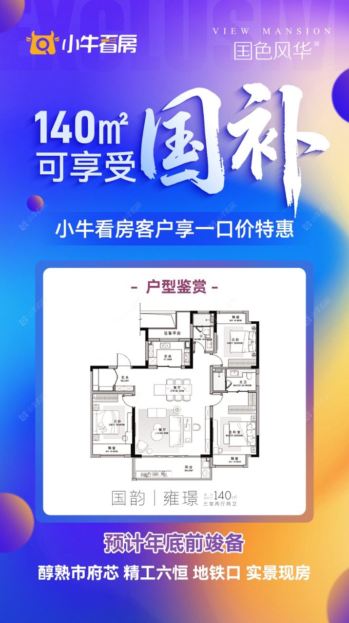 项目优惠140m²可享受国补 预计年底前竣备醇熟市府芯 精工六恒 地铁口 实景现房小牛看房客户享一口价特惠买国色风华 享优惠 就找小牛看房