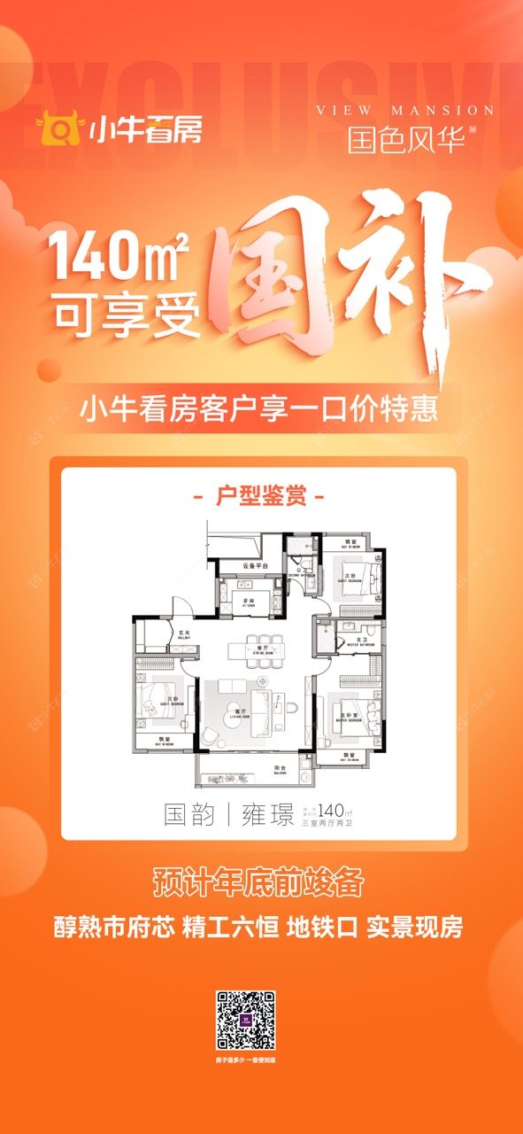 项目优惠140m²可享受国补 预计年底前竣备 醇熟市府芯 精工六恒 地铁口 实景现房 小牛看房客户享一口价特惠 买国色风华 享优惠 就找小牛看房