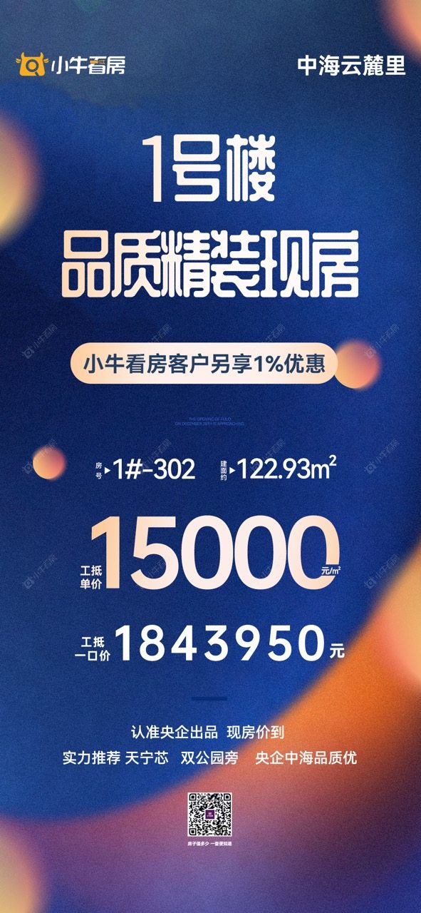 项目优惠认准央企出品 现房价到 实力推荐天宁芯 双公园旁 品质精装现房小牛看房客户享一口价优惠买中海云麓里 享优惠 找小牛看房