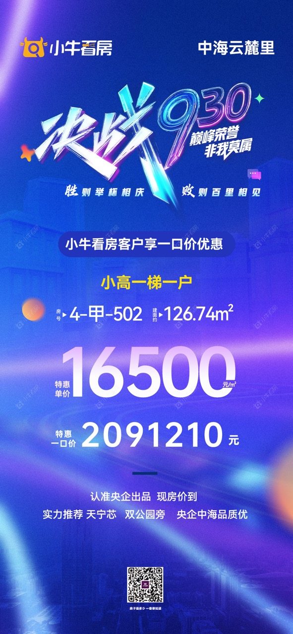 项目优惠认准央企出品 天宁购房看这儿 天宁芯 双公园旁 品质精装现房 小牛看房客户专享特惠一口价房源 买中海云麓里 享优惠 找小牛看房