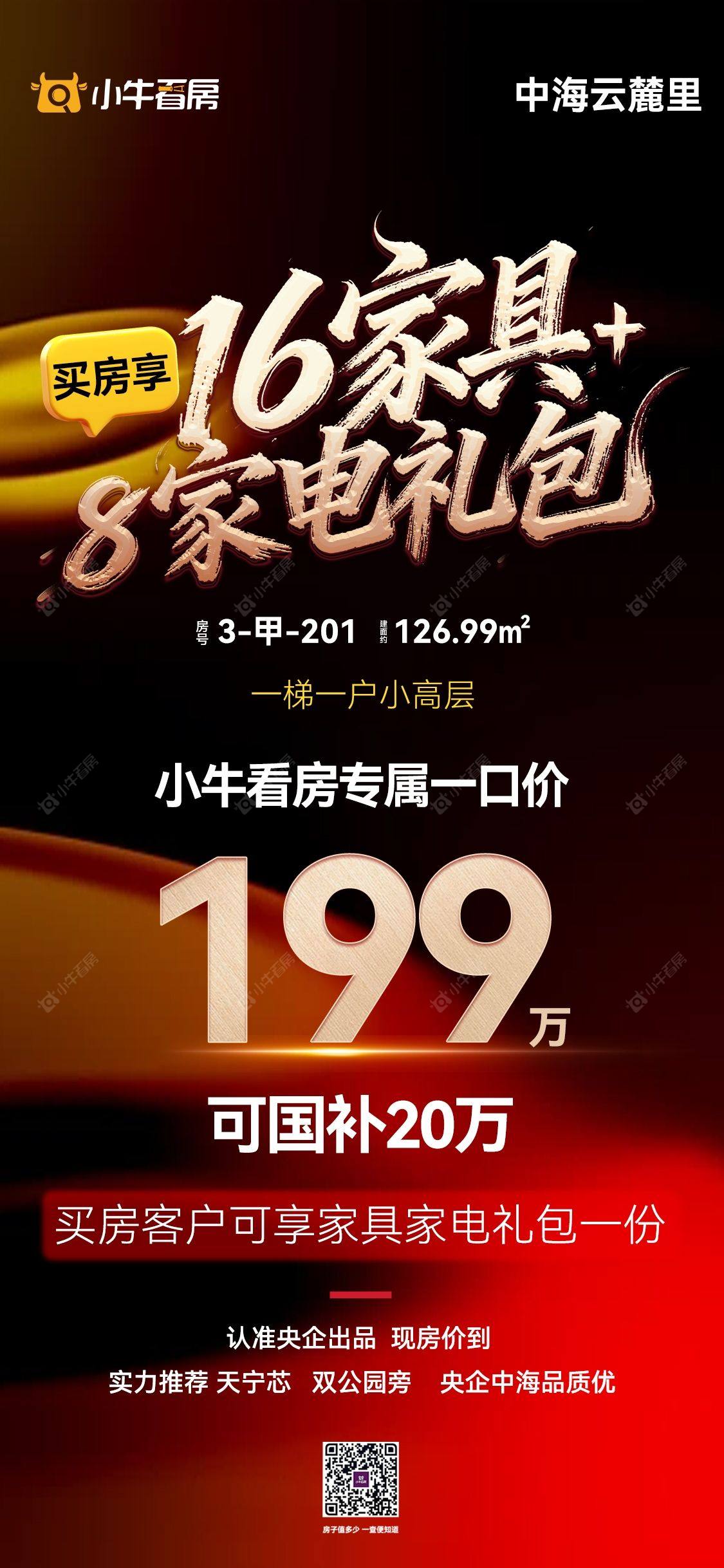项目优惠199万起上车天宁精装127平中海品质 一梯一户小高现房小牛客户享20件家电家居蕞后10席,名额递减中