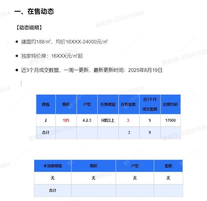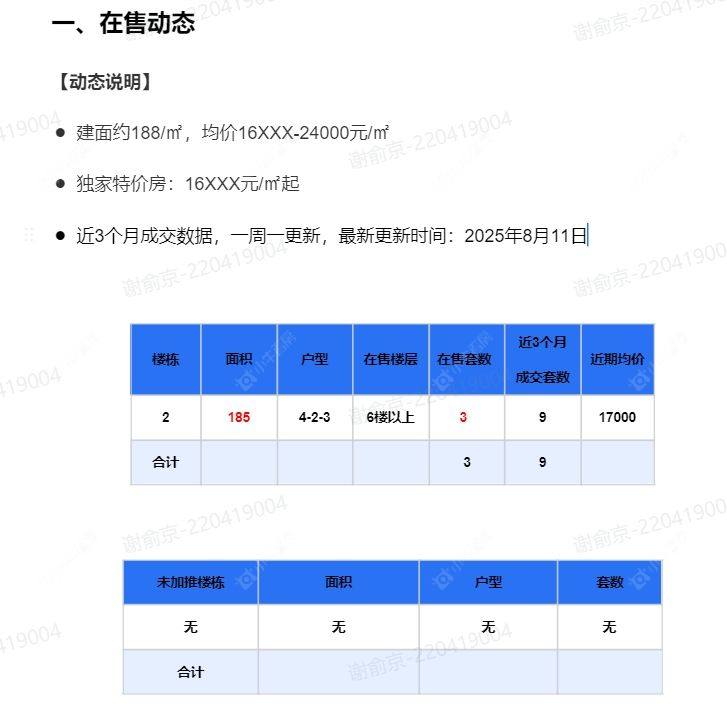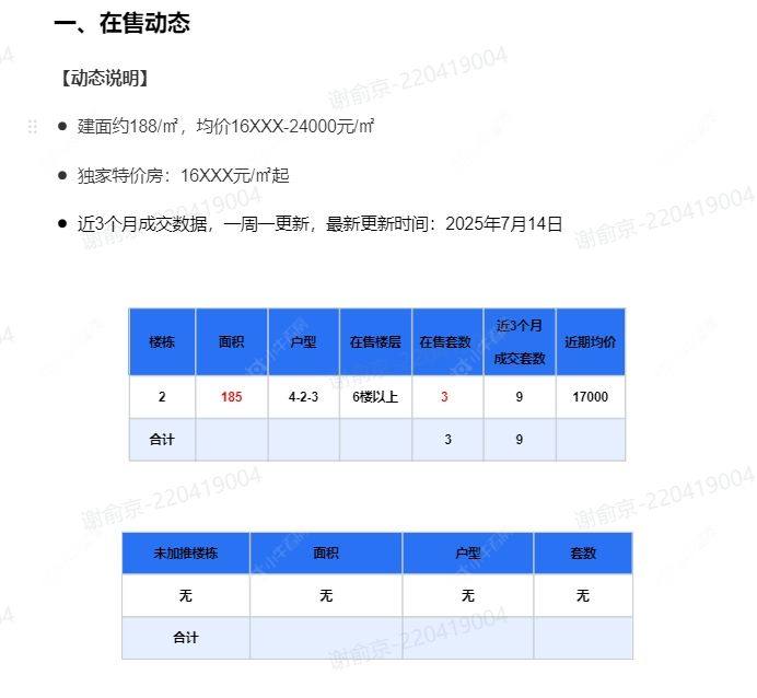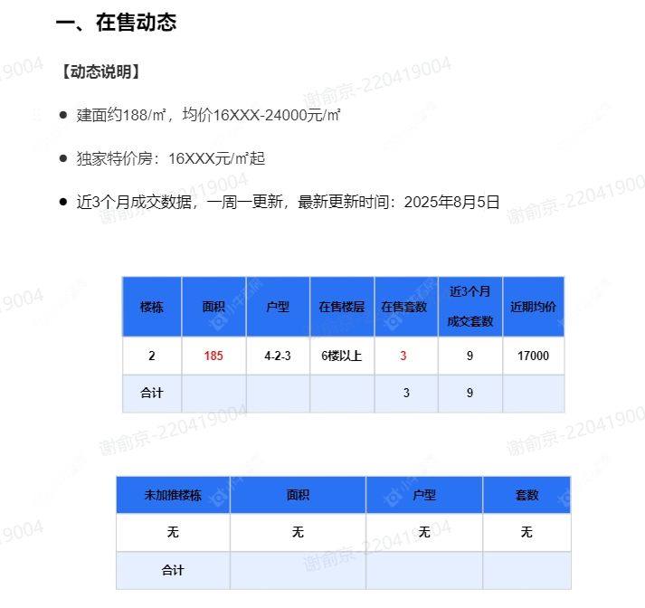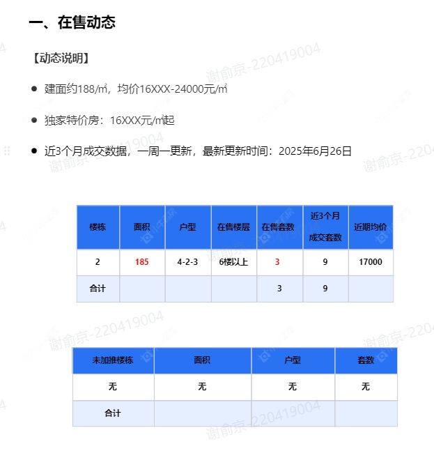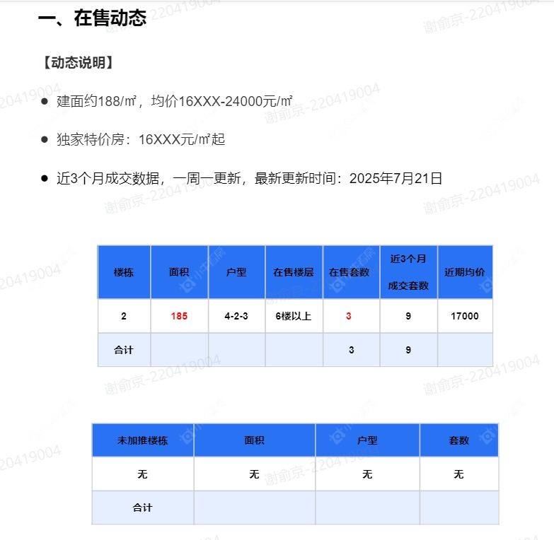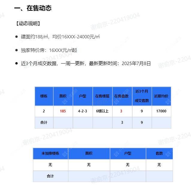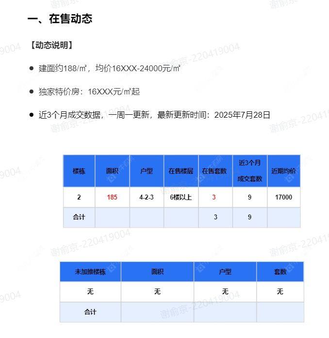 在售动态●建面约188/㎡,均价16XXX-24000元/㎡ ●独家特价房:16XXX元/㎡起