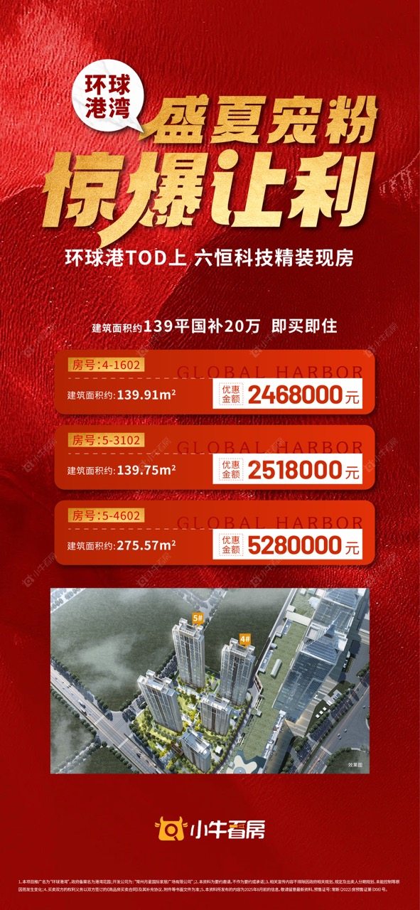 项目优惠盛夏宠粉 惊爆让利 六恒科技精装现房新政补贴蕞高20万 拎包入住小牛看房客户享额外1%优惠买环球港湾,享优惠,找小牛看房