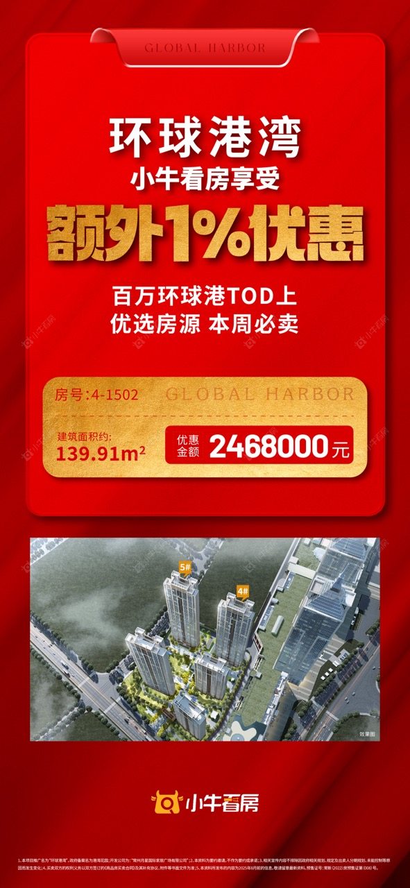 项目优惠百万环球港 TOD1 优选房源 可国补蕞高20万 拎包入住 小牛看房客户享额外1%优惠 买环球港湾,享优惠,找小牛看房