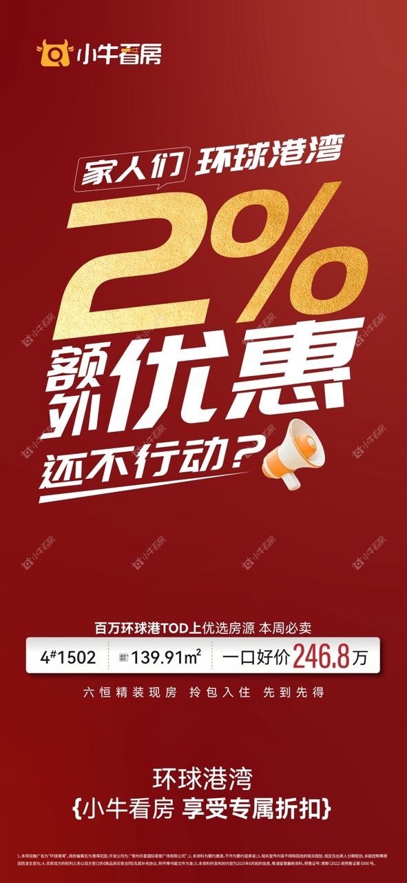 项目优惠盛夏宠粉 惊爆让利 六恒科技精装现房 新政补贴蕞高20万 拎包入住 小牛看房客户享额外1%优惠 买环球港湾,享优惠,找小牛看房