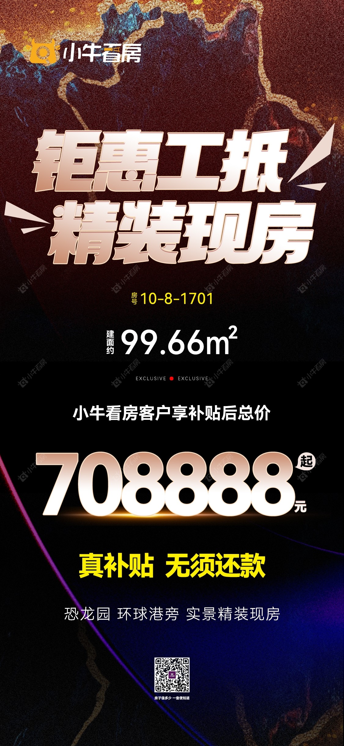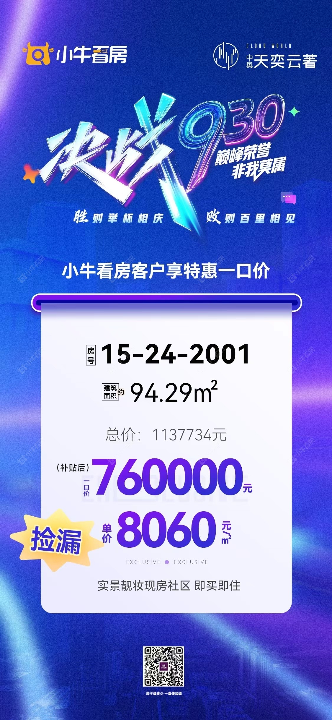 项目优惠清盘特惠 环球港 送车位(仅剩1位) 单价8588起买安家0等待社区 小牛看房专享特惠一口价房源 买天奕云著 享优惠 找小牛看房