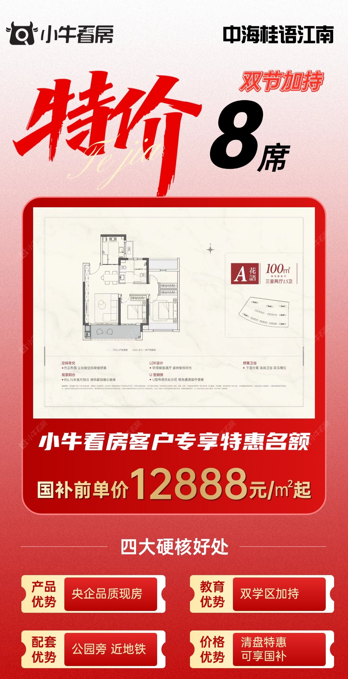 项目优惠地铁口!学府旁!公园边! > 115户型清盘特惠,蕞后10套 小牛看房客户享额外1%优惠 买桂语江南,享优惠,找小牛看房