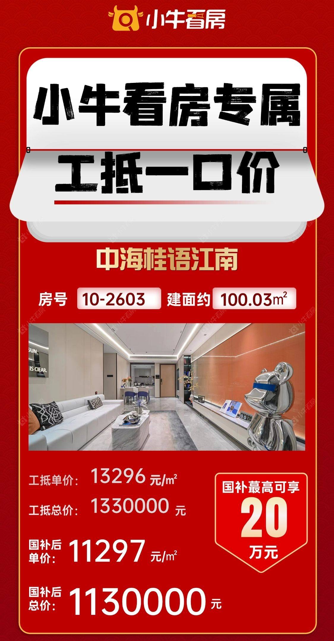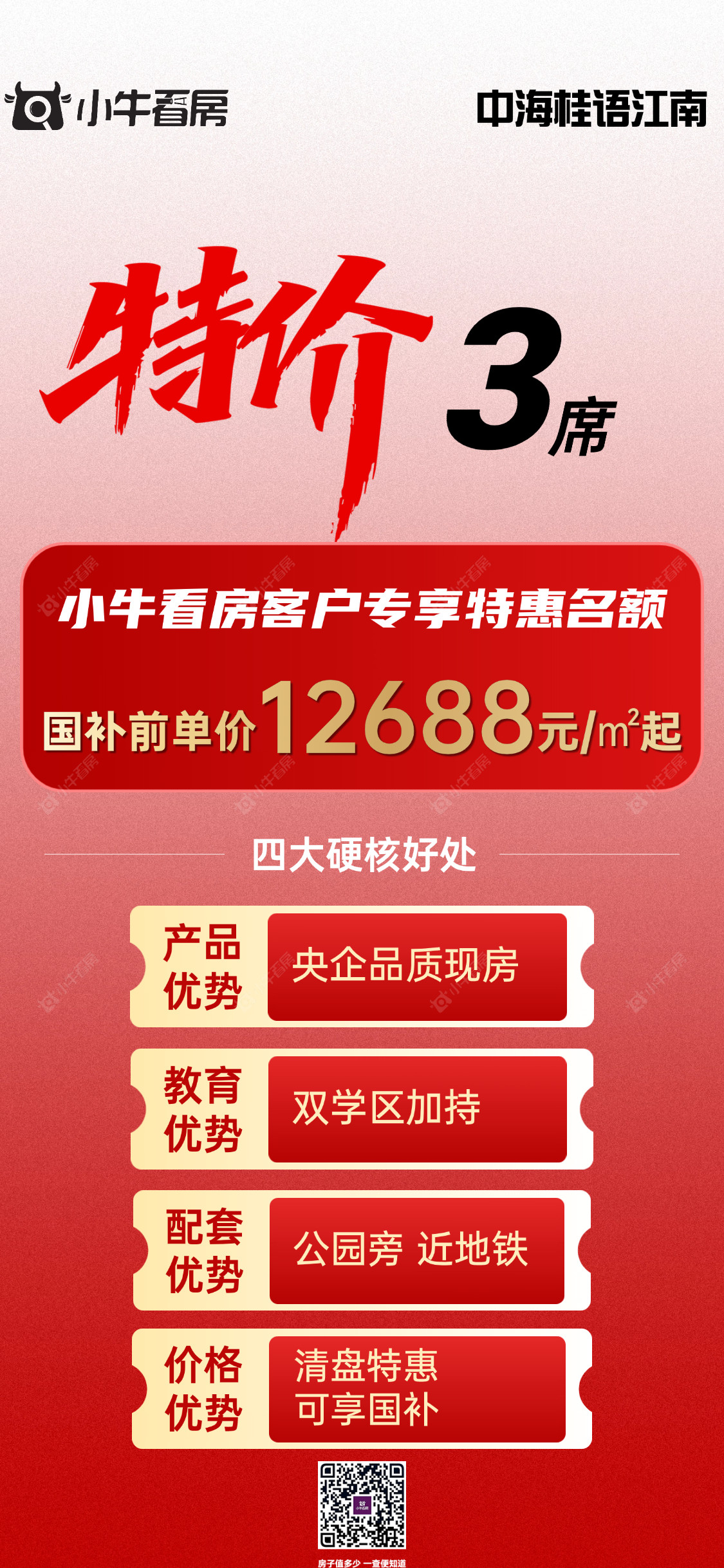 项目优惠地铁口!学府旁!公园边! > 央企品质现房,国补可用 小牛看房客户享国补前单价12688元/㎡起 买桂语江南,享优惠,找小牛看房