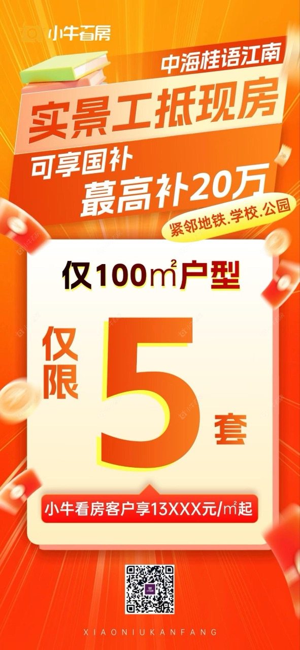 项目优惠双节钜惠|中海现房清盘倒计时 地铁+学校双配套,安家一步到位 小牛看房专享8席特惠 12888元/平起 买桂语江南,享受优惠,找小牛看房