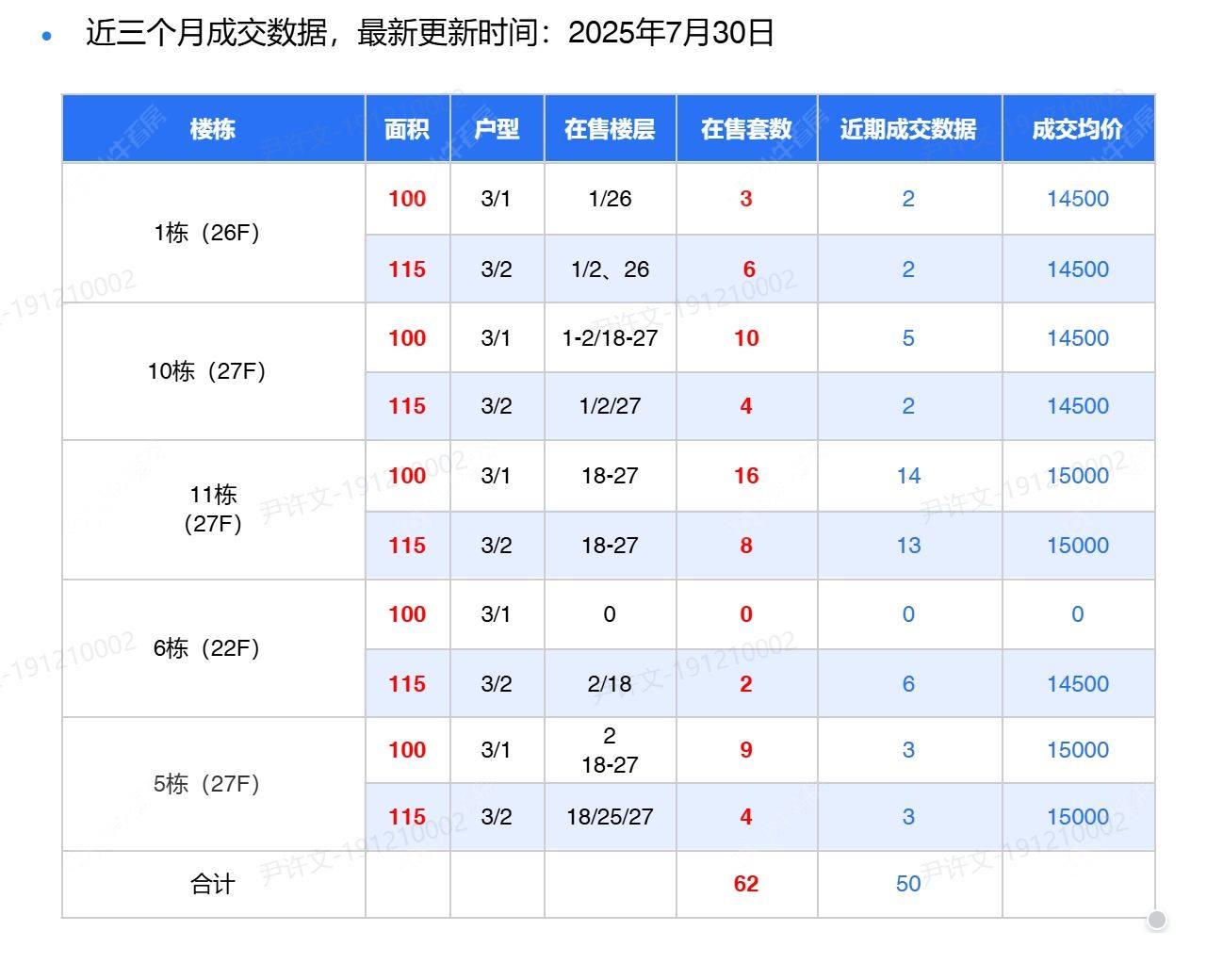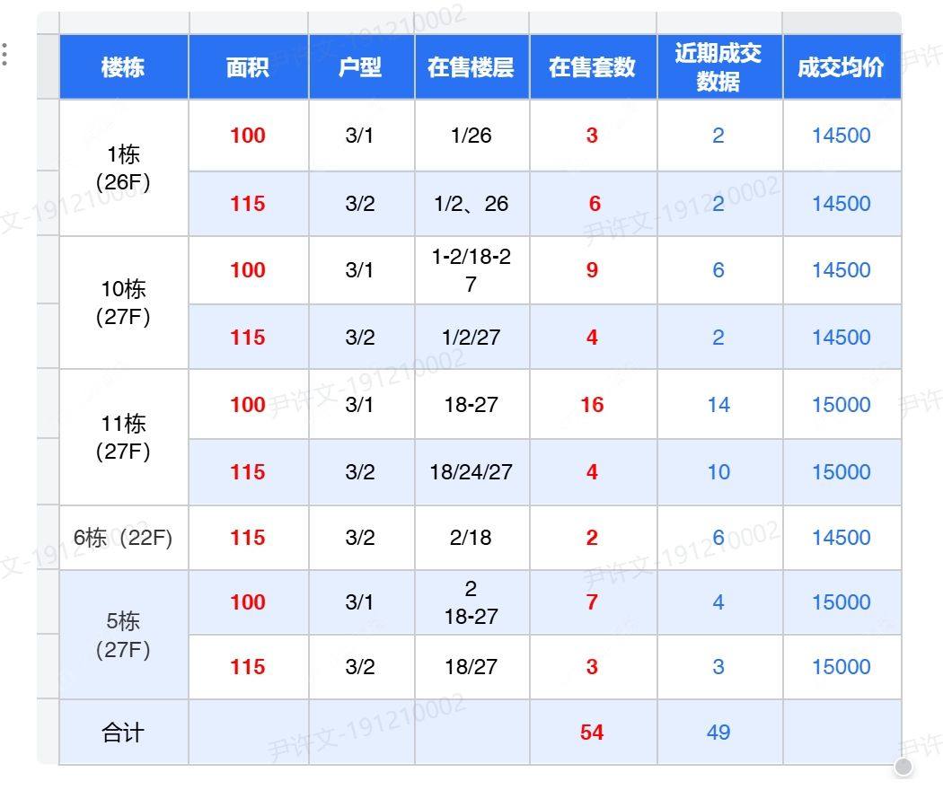 在售动态主力在售 高层剩余楼栋所有房源,100-115户型 ,参考单价13500-15000元/㎡ 洋房已全部售完