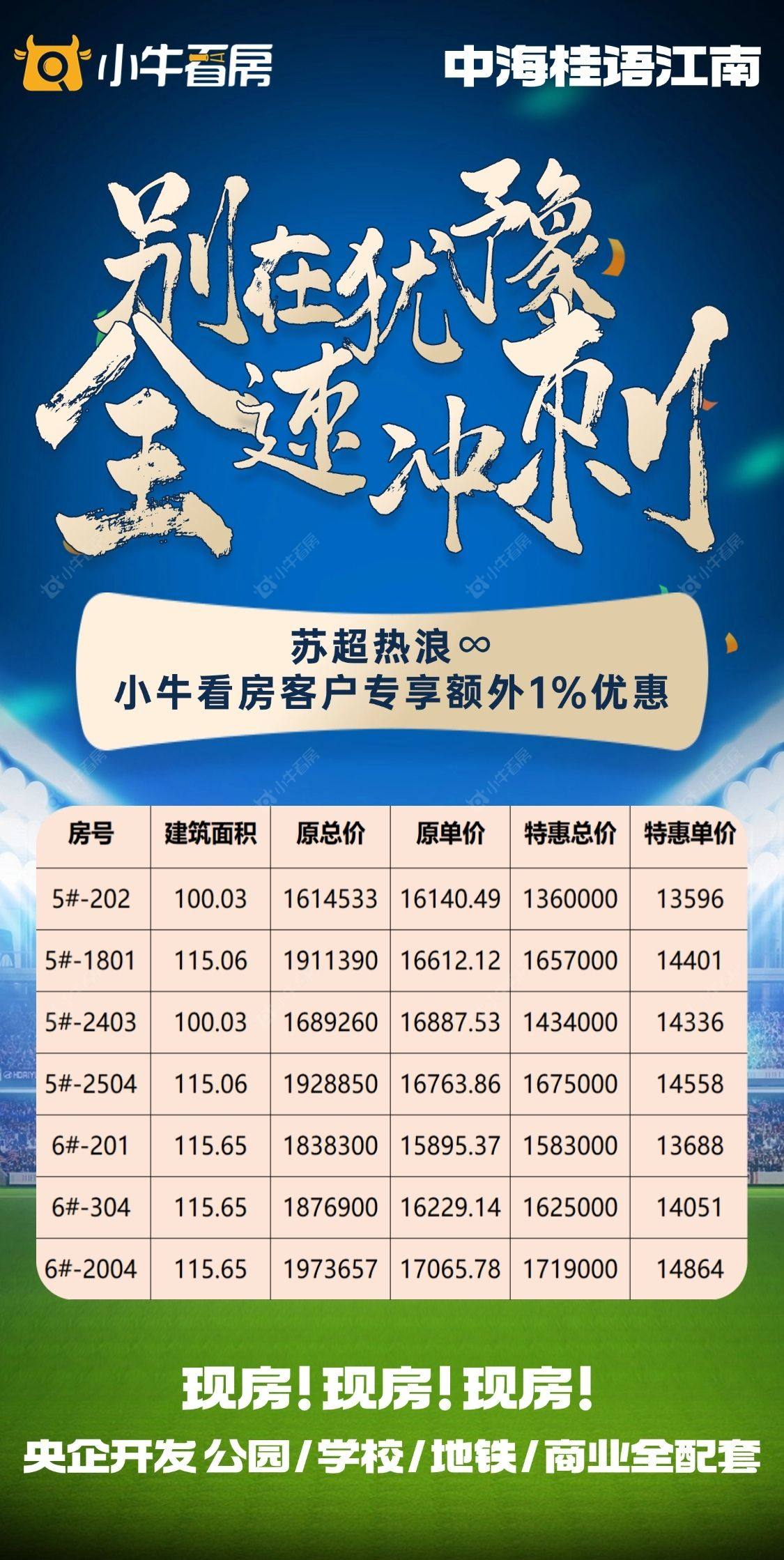 项目优惠⚽️热血苏超,为常州队打call 现房,地铁口/学府旁/公园里/商业全配套 小牛看房客户享额外1%优惠 买桂语江南,享优惠,找小牛看房