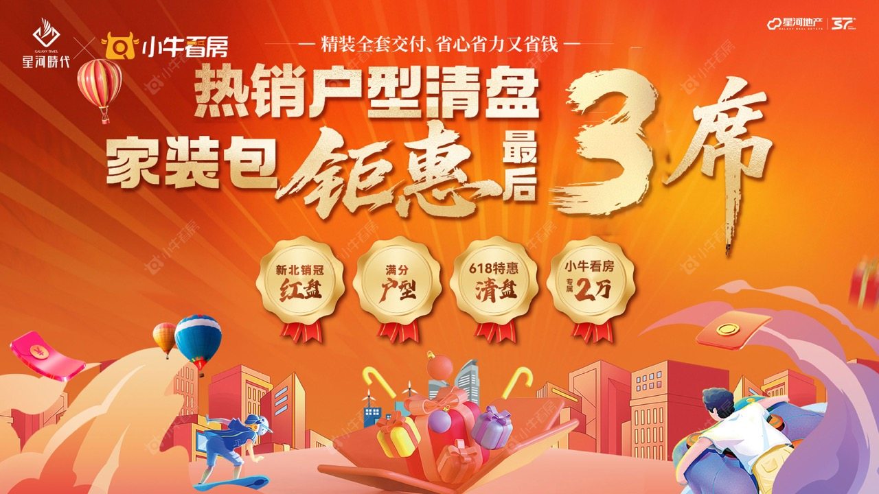 项目优惠定金1万起买吾悦旁 清盘倒计时 星河品质精装 送5万家装礼包 小牛看房客户享特惠一口价房源 买星河时代 享优惠 找小牛看房