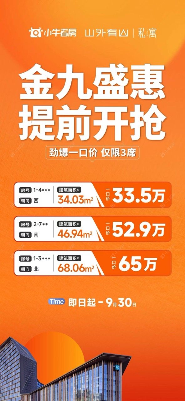 项目优惠有房撑腰 勇敢追梦 山外有山 安家立业的底气 让孩子的打拼 无后顾之忧 总经理特批3套特价房 买公寓 享优惠 找小牛看房