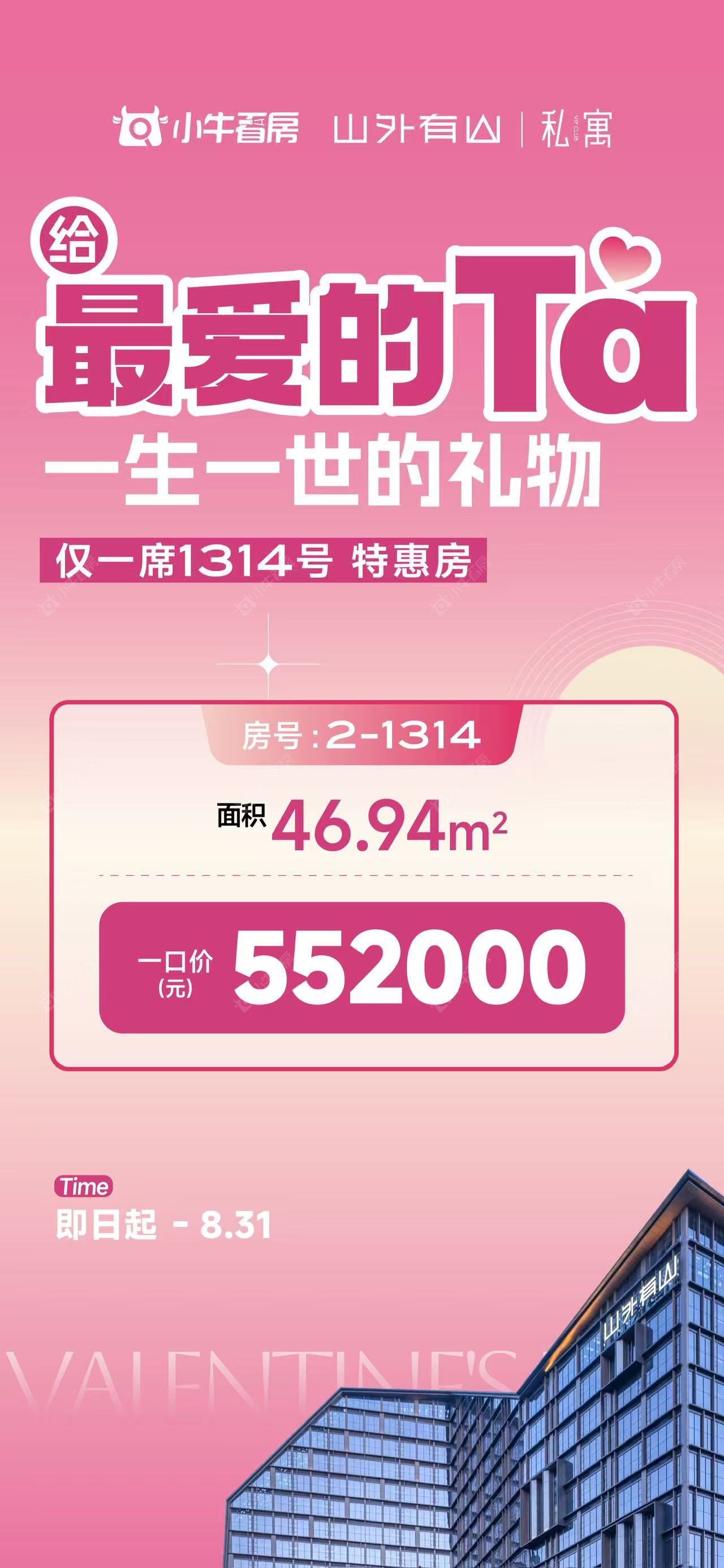 项目优惠山外有山 七夕特推 只此1席 房号1314 给TA一生一世的爱❤️ 常州高颜值高销量获奖公寓 买公寓 享优惠 找小牛看房