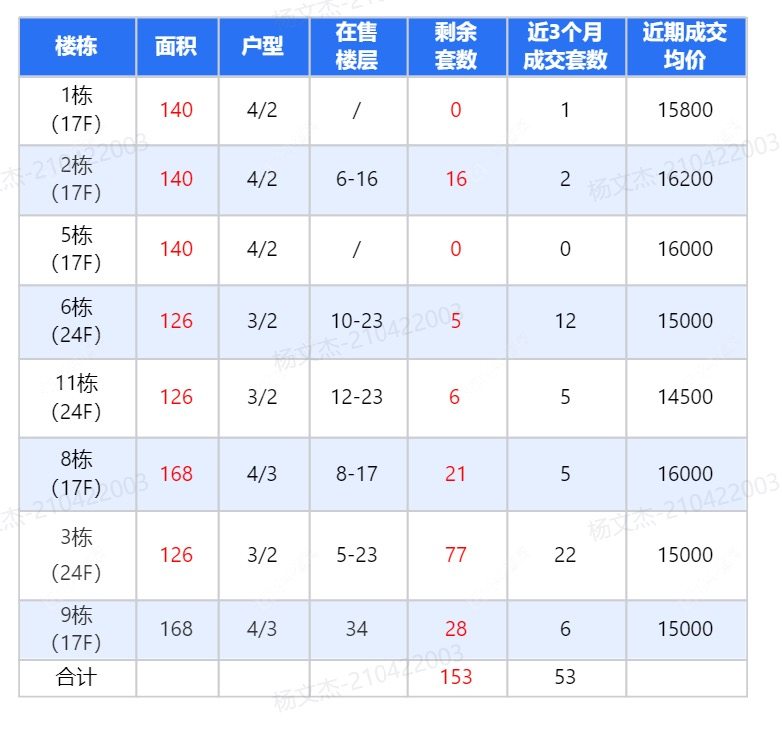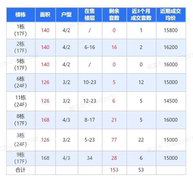 在售动态【动态说明】 ●建面126-140-168㎡精装准现房,目前已交付 3号楼、9号楼已正式加推 2号楼140㎡,3-6-11号楼126㎡,8、9号楼168㎡在售,单价14XXX元/㎡起 近3个月成交数据...