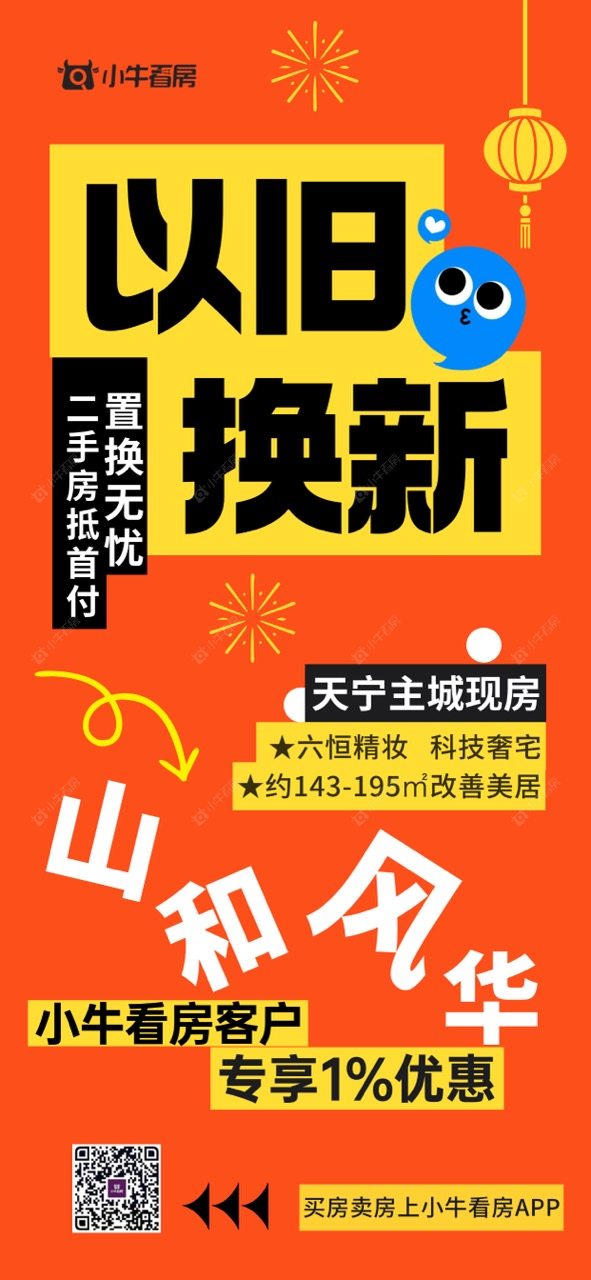 项目优惠拿“旧房”换新房,无忧置换住新宅六恒科技,精妆现房豪宅小牛看房客户额外1%优惠买山和风华,享优惠,找小牛看房