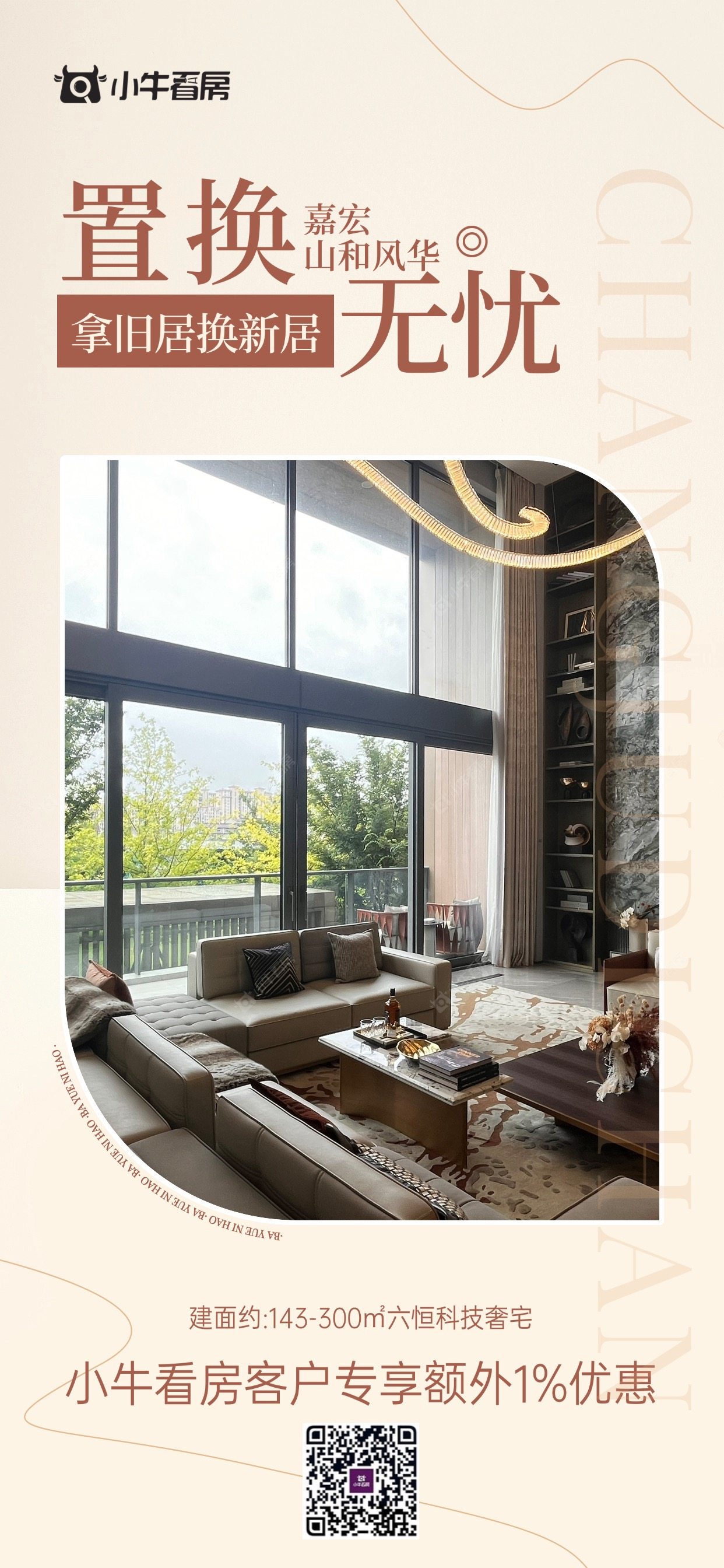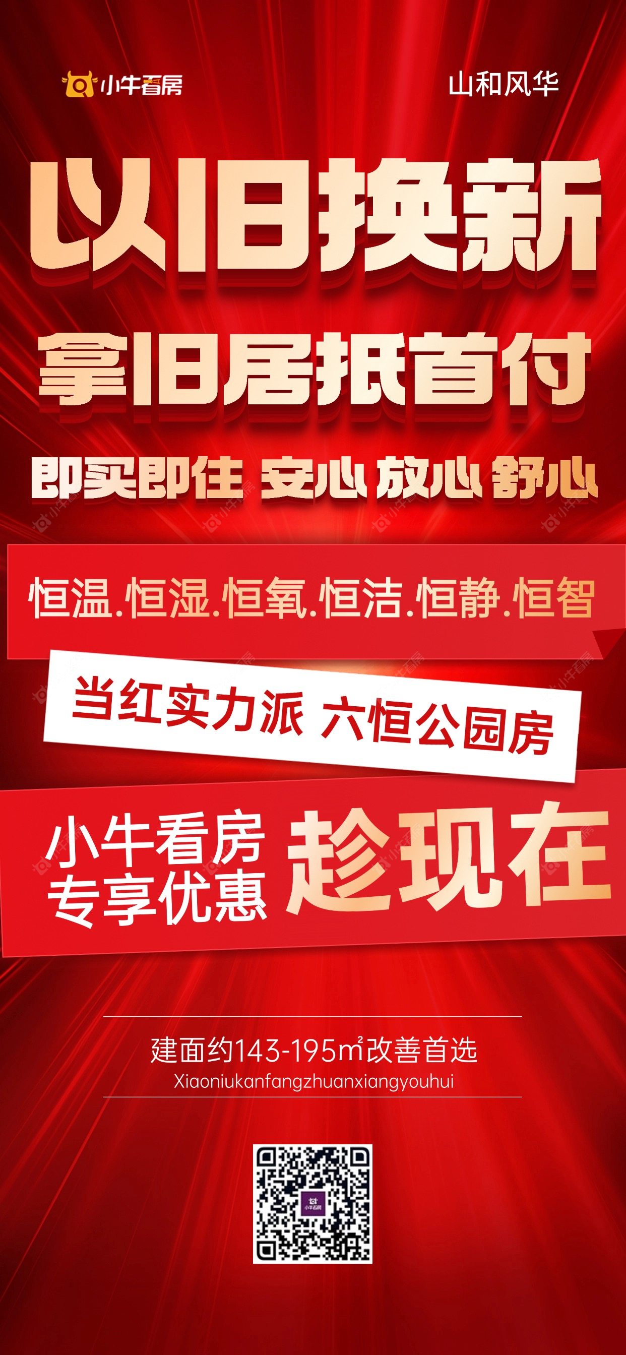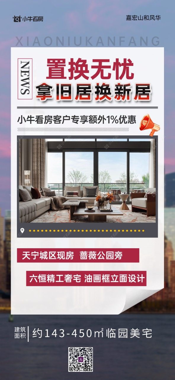 项目优惠拿“旧房”换新房,无忧置换住新宅 六恒科技豪宅+自带3000平会所 小牛看房客户额外1%优惠 买山和风华,享优惠,找小牛看房