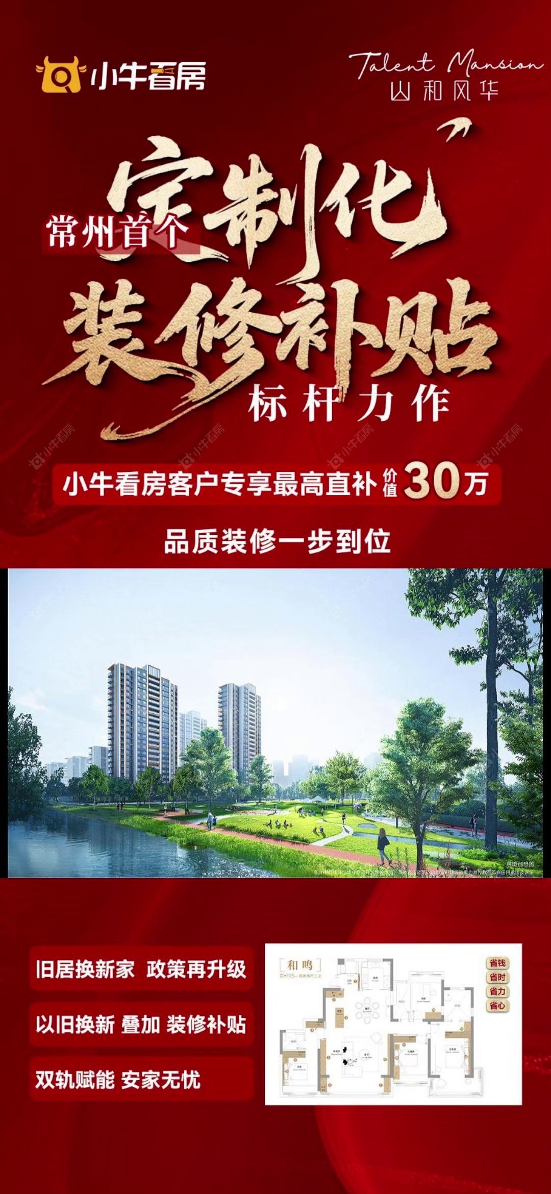 项目优惠#常州首个定制化装修补贴项目,补贴30万装修包✅𝟲项加载包➕𝟭𝟲项全屋定制💥省钱|省时|省力|省心💯小牛看房客户再享额外优惠买山和风华 享优惠 就找小牛看房