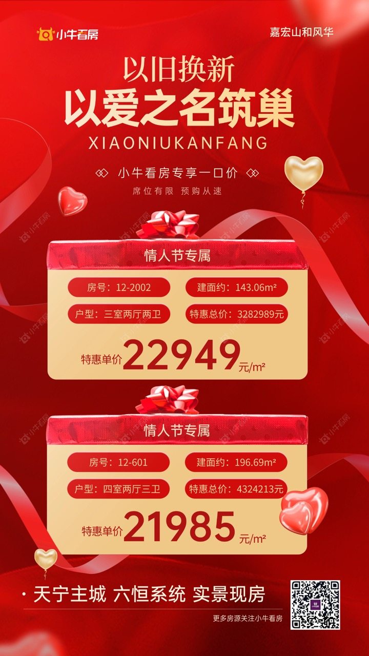 项目优惠拿“旧房”换新房,无忧置换住新宅 六恒科技,精妆现房豪宅 小牛看房情人节专属优惠 买山和风华,享优惠,找小牛看房