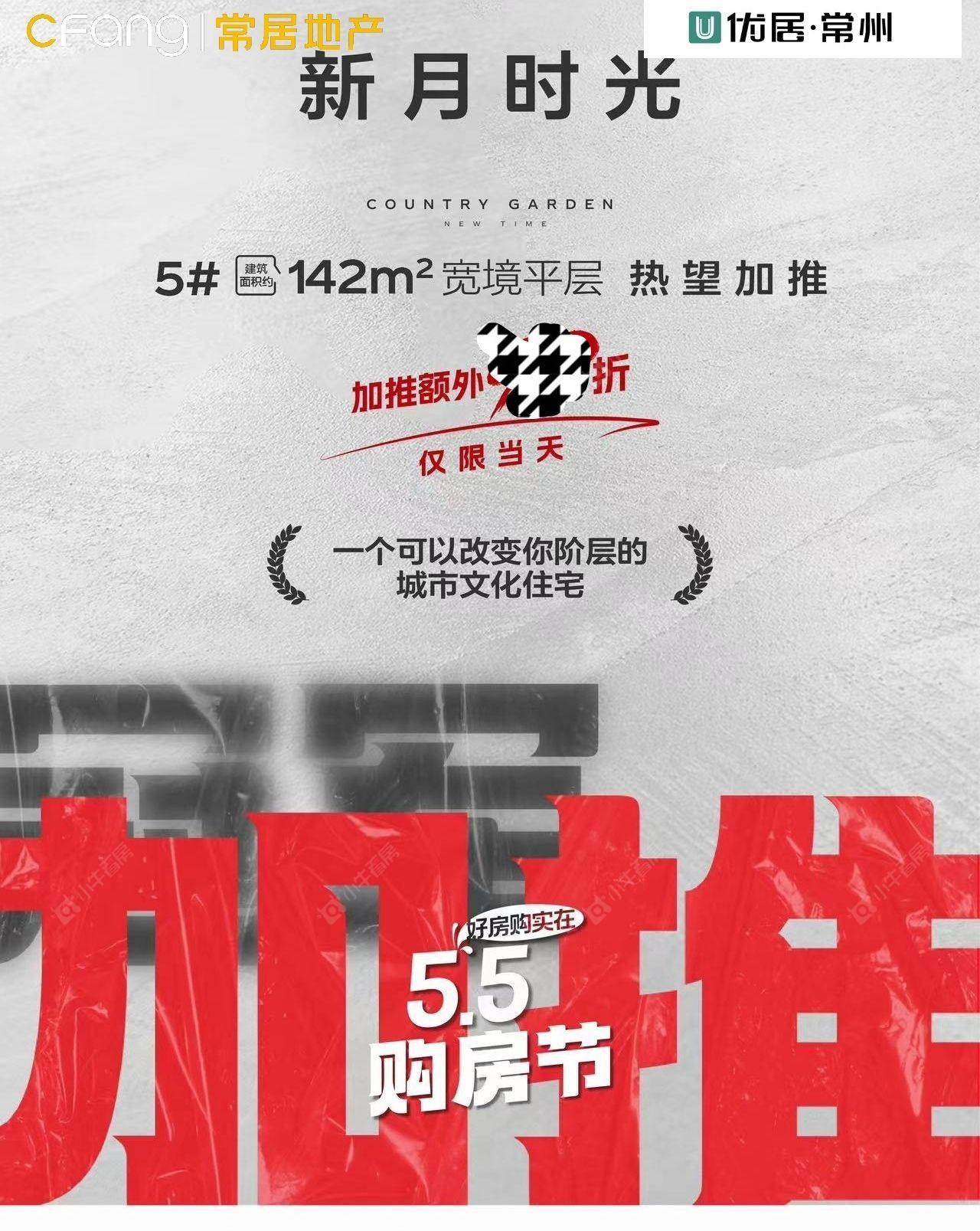 施工进度局小/常外旁•改善教育住区 𝟓#楼142宽境平层 周六加推 常居优居带访特惠额外折上折 仅限当天享额外优惠,价格绝对劲爆 买新月时光 享优惠 找常居优居