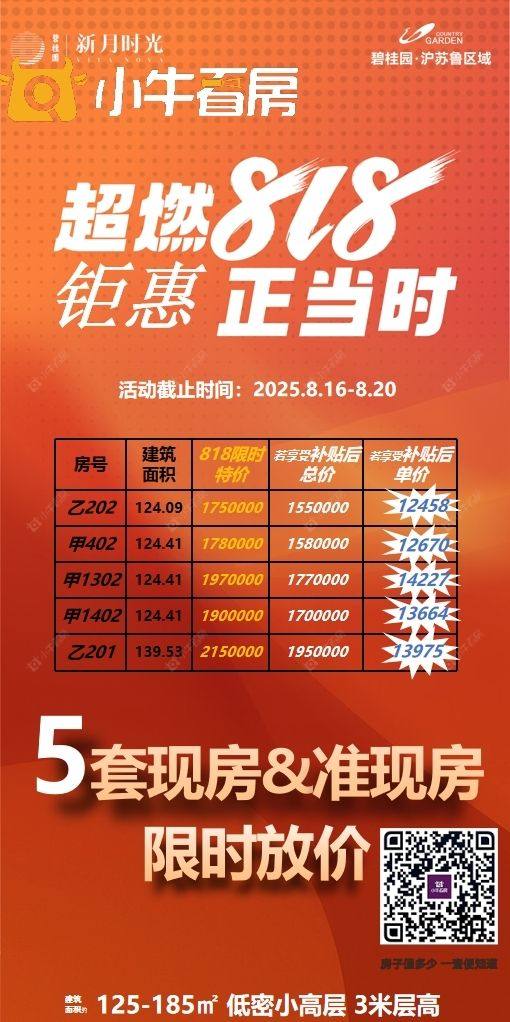 项目优惠超燃❽❶❽ 钜惠正当时 国补 | 低首付 | 车位券 | 特价 𝟴.𝟭𝟲-𝟴.𝟮𝟬 限5套 拼手速 局小常外旁 改善教育住区 买新月时光 享优惠 找小牛看房