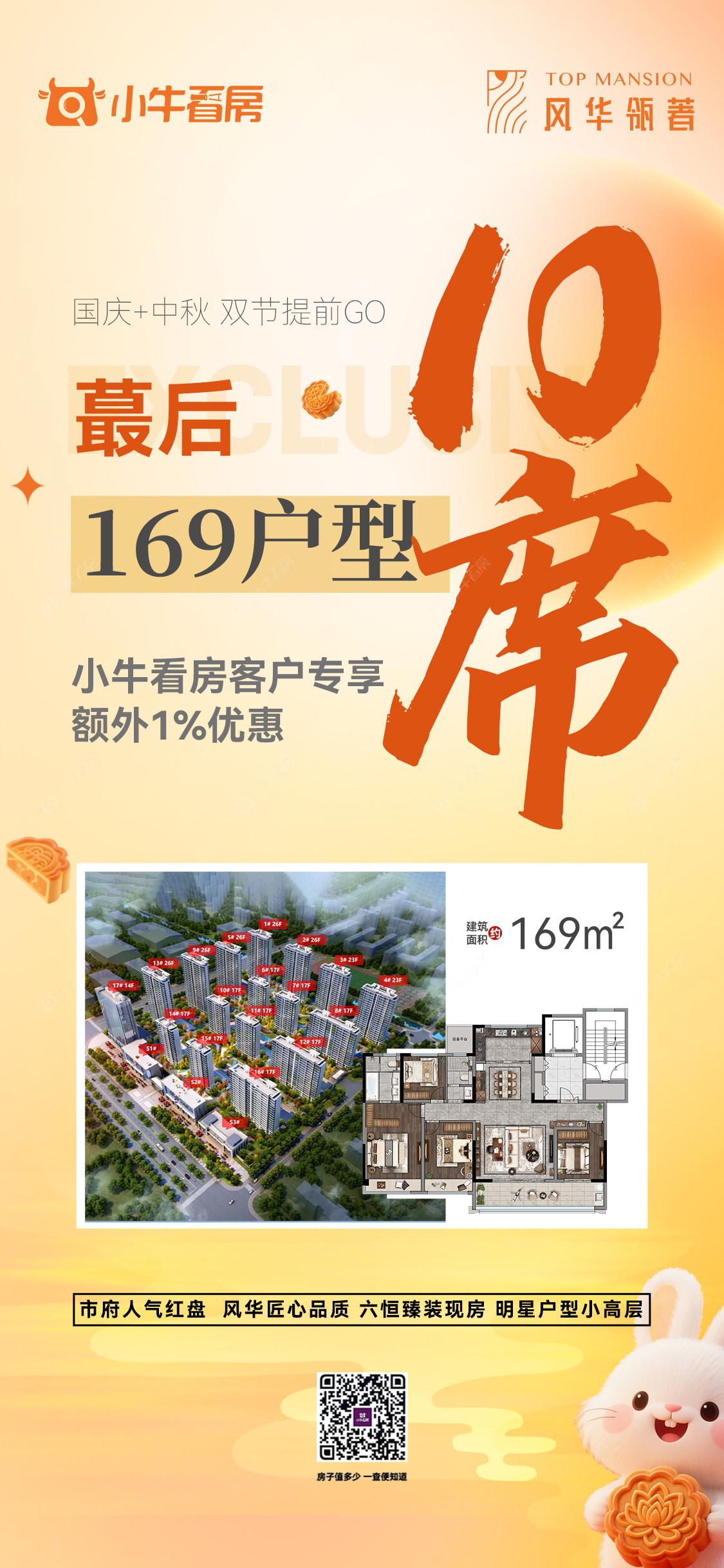项目优惠约169m²蕞后10席 双节提前 GO市府芯 六恒现房 全天采光小牛看房客户专享额外1%优惠买风华瓴著,享优惠,找小牛看房