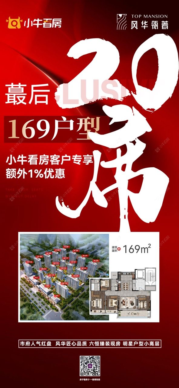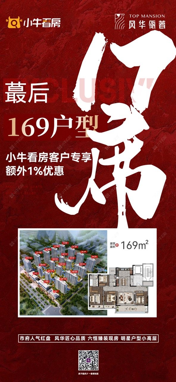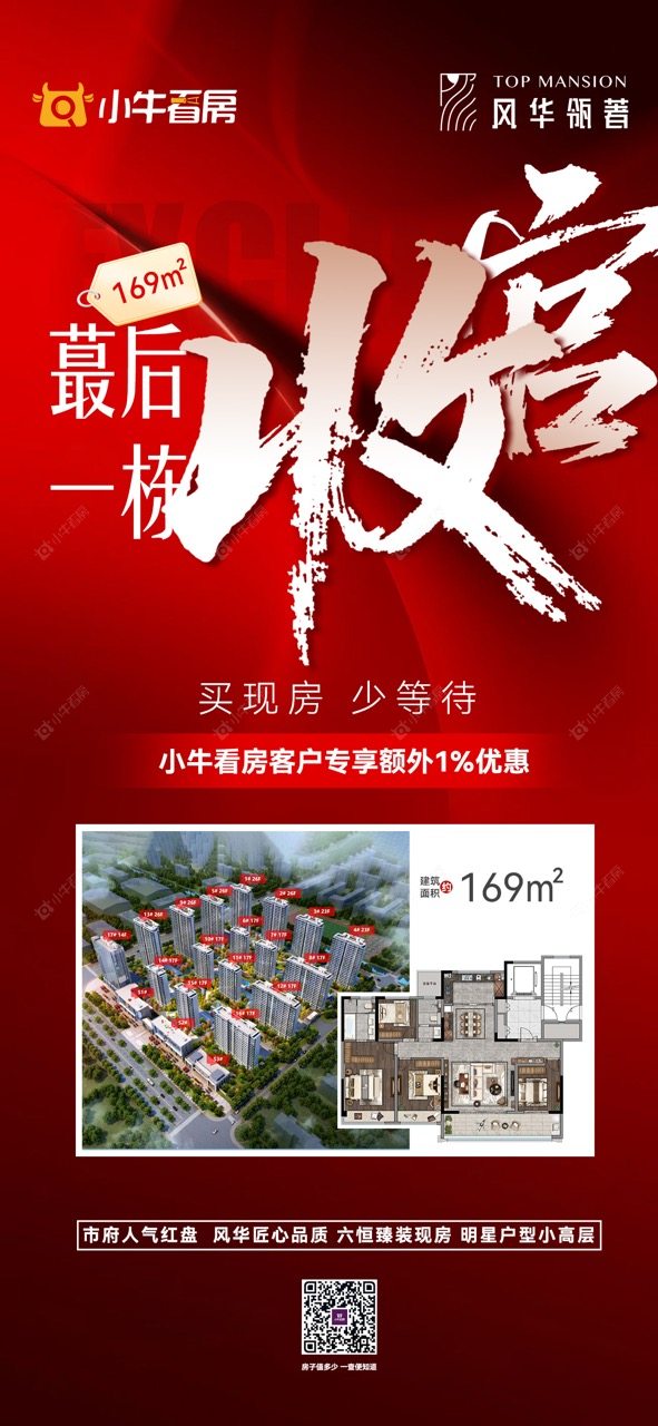 项目优惠买现房 少等待 蕞后一栋收官 市府唯一在售169平 头排户型 全天采光 小牛看房客户专享额外1%优惠 买风华瓴著,享优惠,找小牛看房