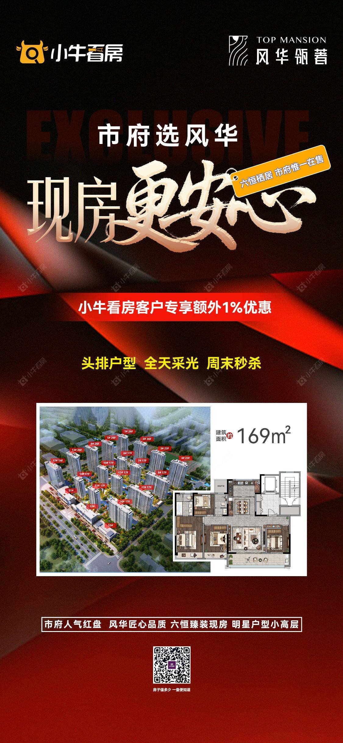 项目优惠买现房 少等待 169m²蕞后17席市府芯 六恒现房 全天采光小牛看房客户专享额外1%优惠买风华瓴著,享优惠,找小牛看房