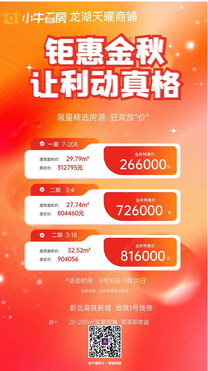 项目优惠不用等谁的“我养你” 龙湖天耀底商 给你稳稳的安全感 少量一楼底商在售 面积30平起 买商铺 想优惠 找小牛看房