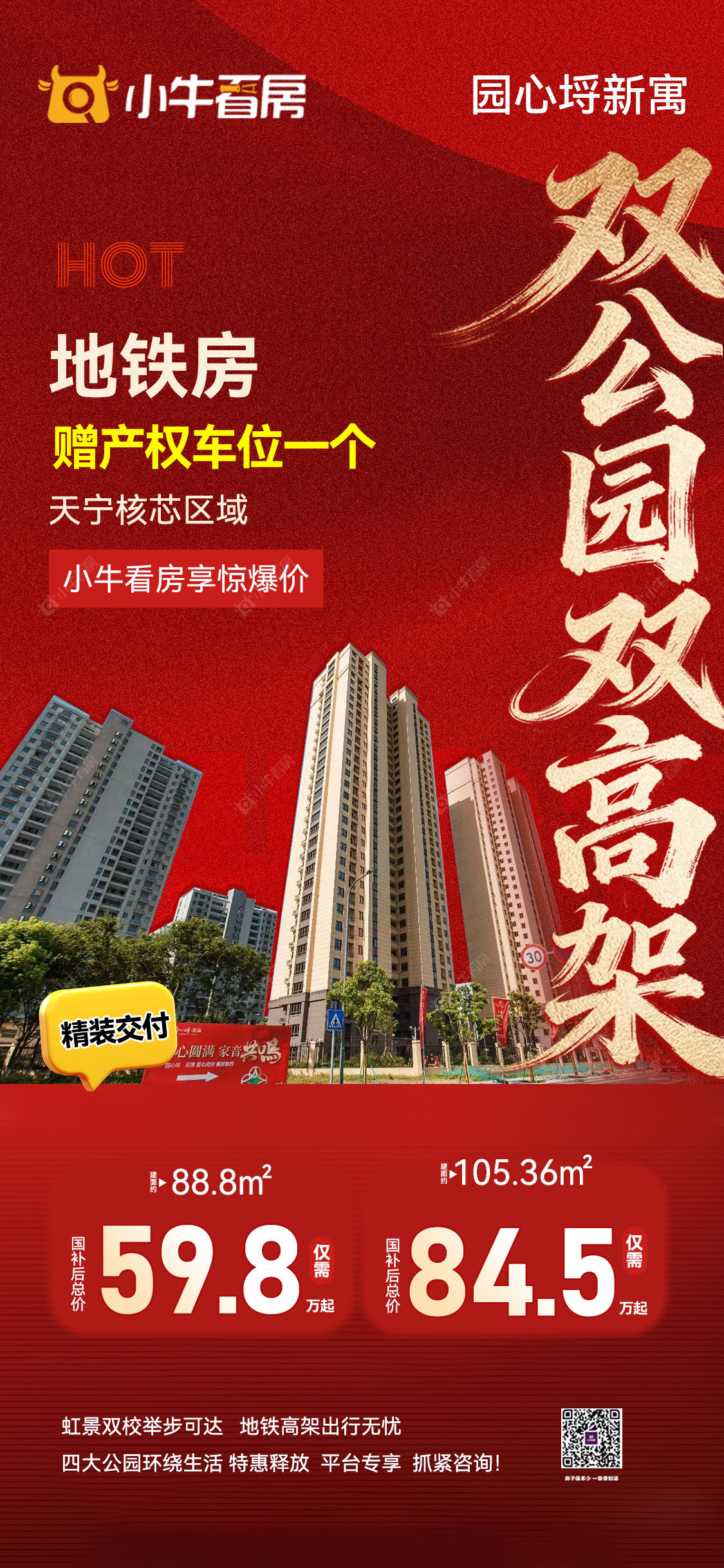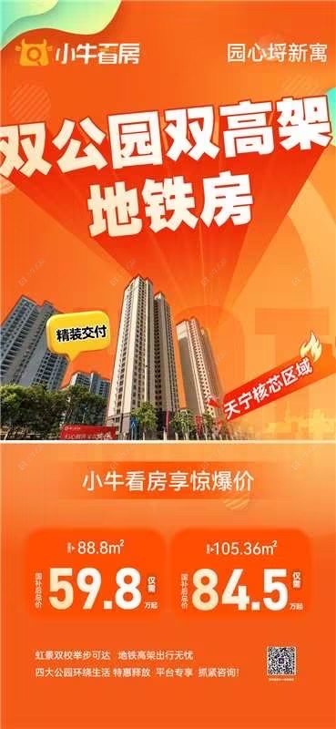 项目优惠💥天宁核心区性价比天花板!双公园+双地铁+双学区,精妆现房送产权车位,88-105-128-138㎡,总价59.8万起,赶紧来撩! 买新房 享优惠 找小牛看房
