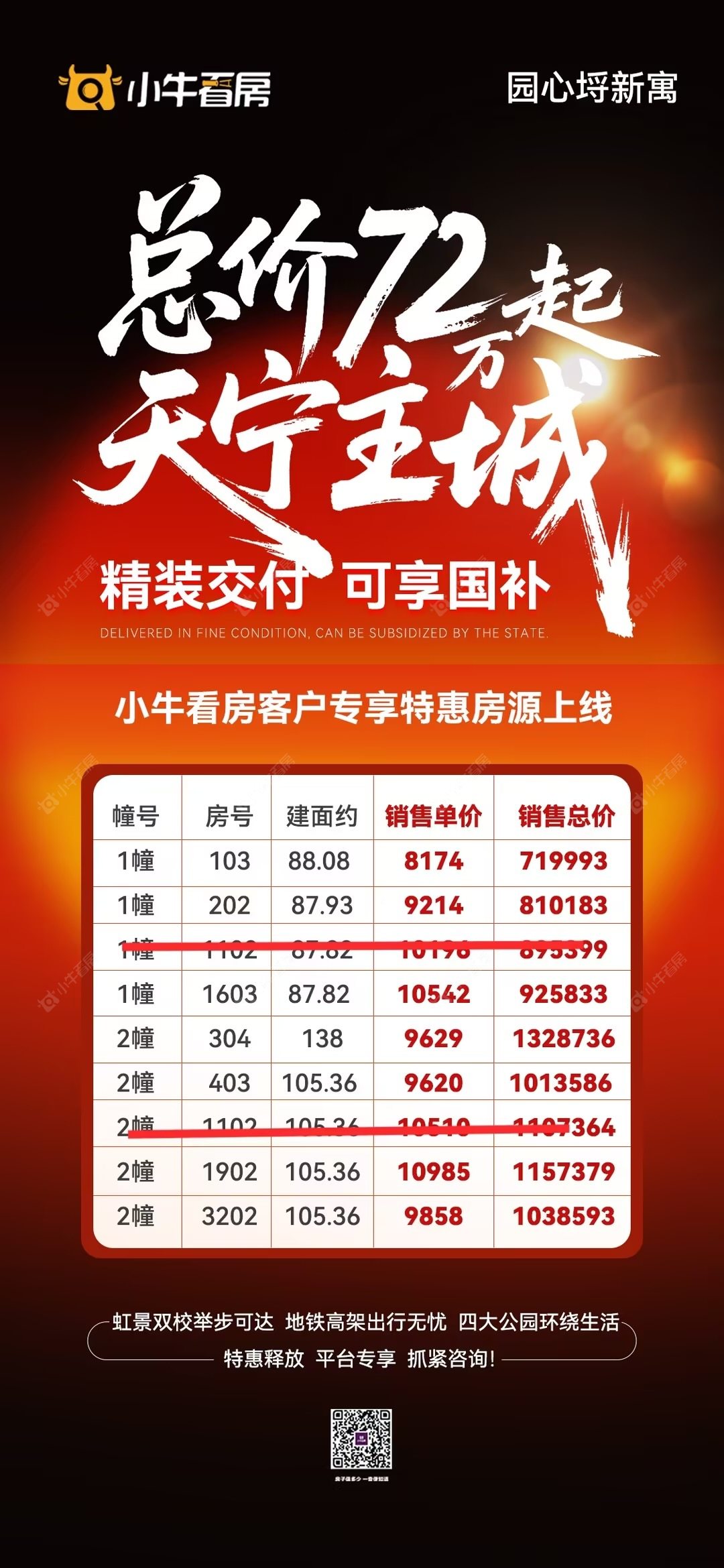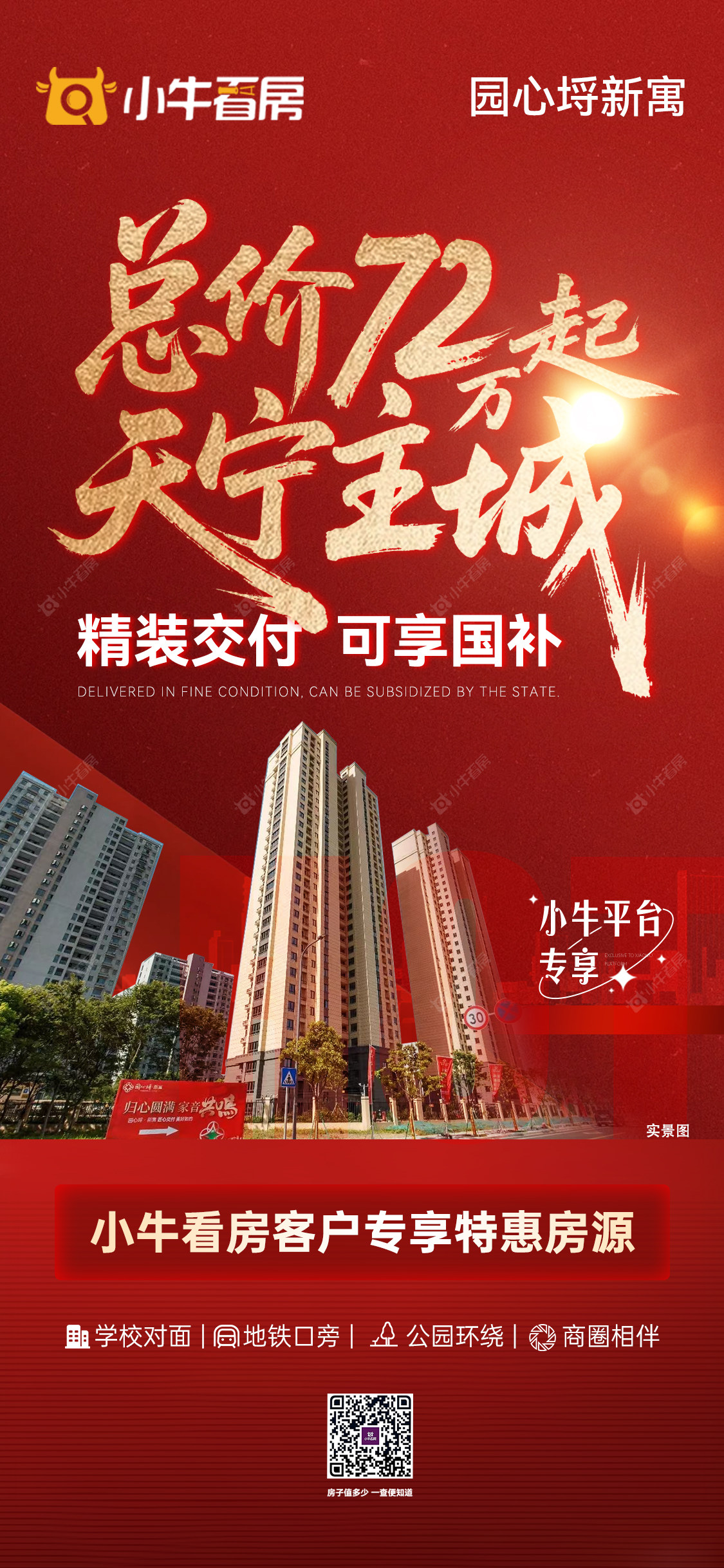 项目优惠🚨劲爆!天宁紫荆公园旁 精妆交付 享国补 地铁2号线 吾悦广场 双学区近在咫尺!配套无敌总价只需72万起!买园心埒 享优惠 找小牛看房