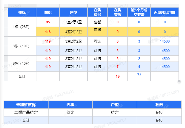 在售动态高层建面约116㎡ ,毛坯高层均价12000元/㎡起 ;精装高层均价14000元/平;洋房建面约119㎡,洋房均价14500元/㎡。
