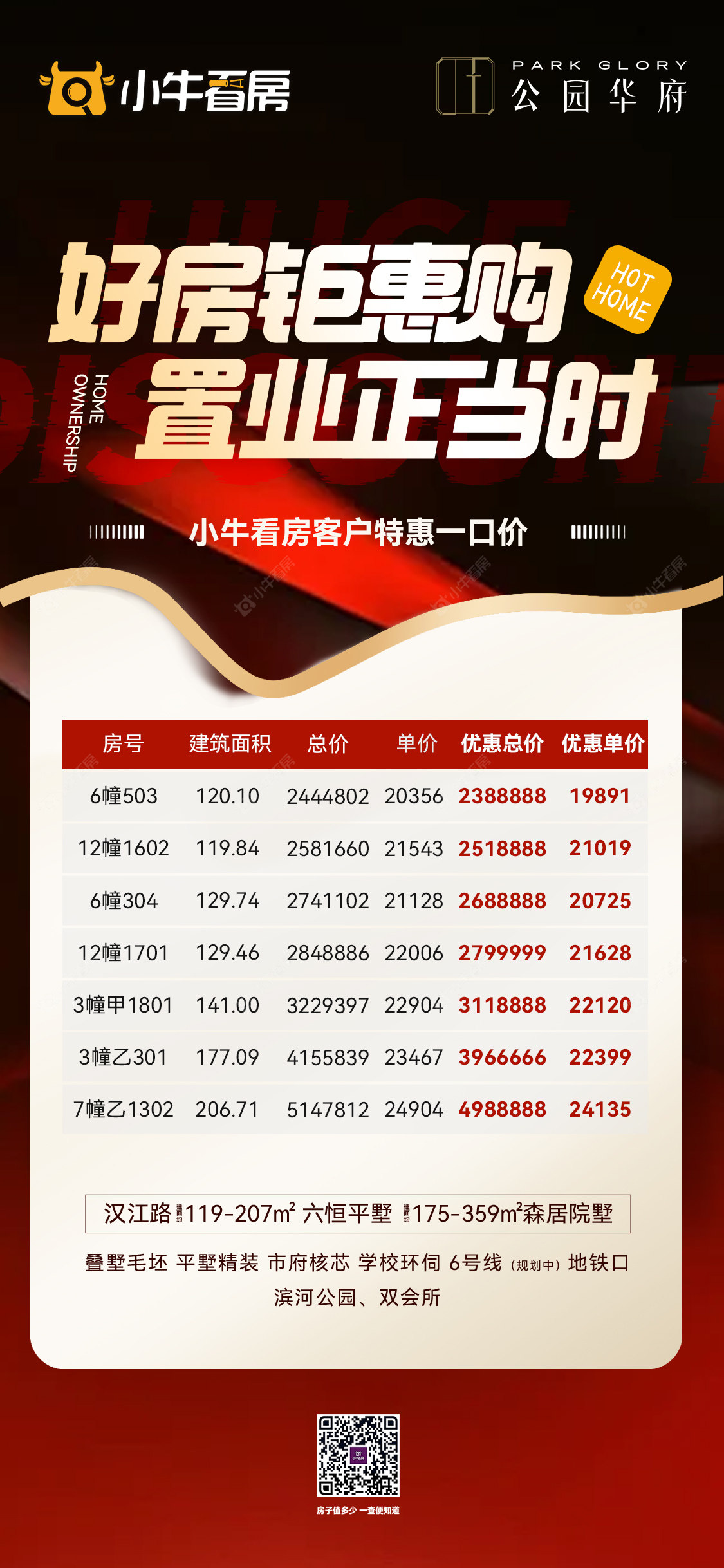 项目优惠好房钜惠购 置业正当时 谨此7套特惠名额 先到先得 学府旁·地铁口·滨河公园·双会所 小牛看房客户享特惠一口价 买公园华府,享优惠,找小牛看房