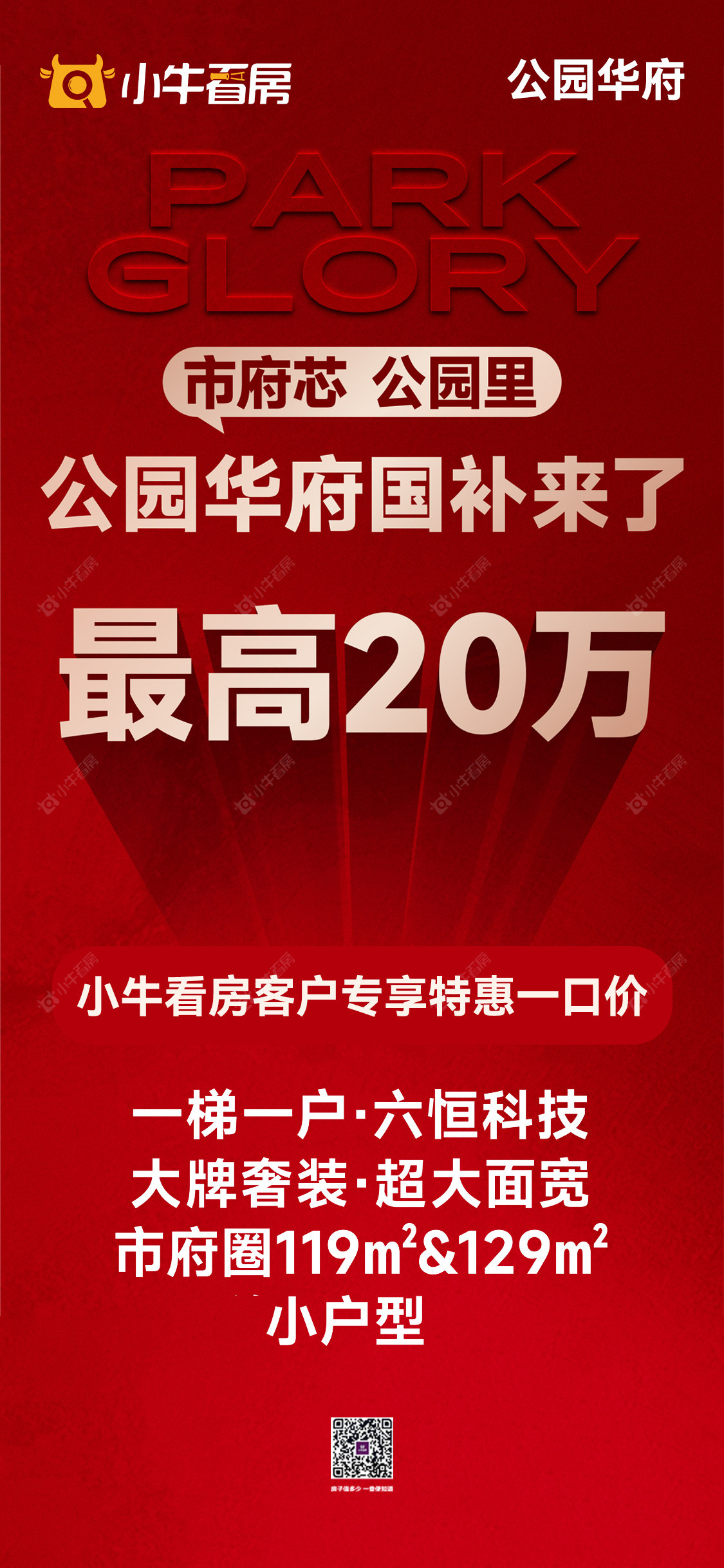 项目优惠国补来袭 蕞高20万 六恒科技 市府芯 小户型119㎡和129㎡ 实景准现房 今年买今年住 学府旁·地铁口·滨河公园·双会所 小牛看房客户享特惠一口价 买公园华府,享优惠,找小牛看房