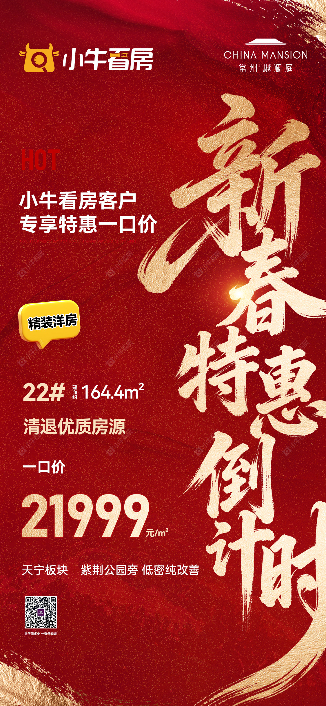 项目优惠新年特惠倒计时 清退优质房源 天宁核芯板块 紫荆公园旁 容积率1.5 精装现房 等你品 小牛看房客户专享特惠一口价 买樾澜庭,享优惠,找小牛看房