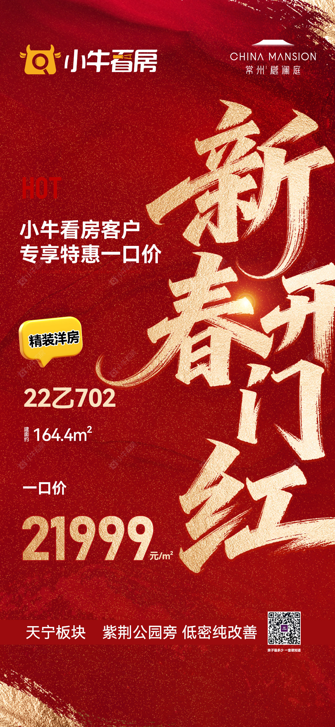 项目优惠年末冲刺 洋房165m²高区剩余10套天宁板块 紫荆公园旁 纯改善容积率1.5 低密现房 洋房➕叠墅小牛看房客户专享特惠一口价买天宁洋房 享优惠 找小牛看房