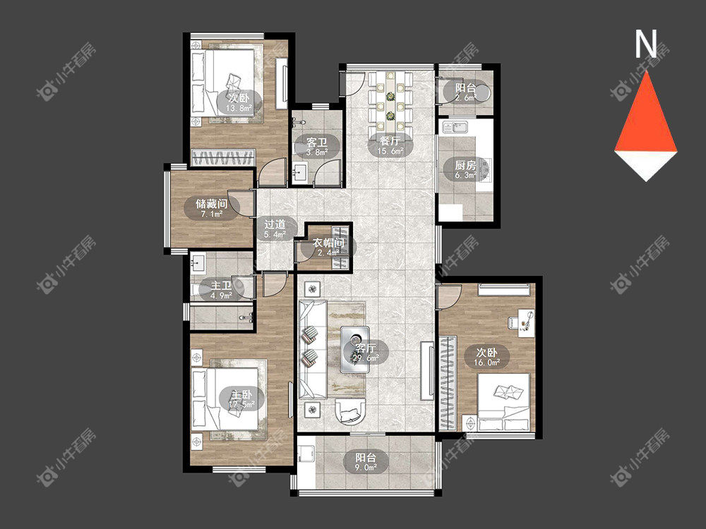 整租· 莱蒙城中央府西区 4室2厅2卫 精装