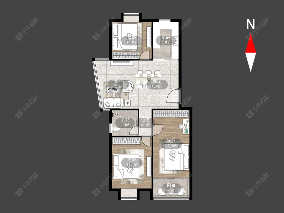 3室2厅1卫 | 106.74㎡ | 南