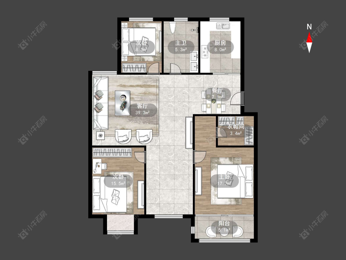 3室2厅1卫 | 168.75㎡ | 南