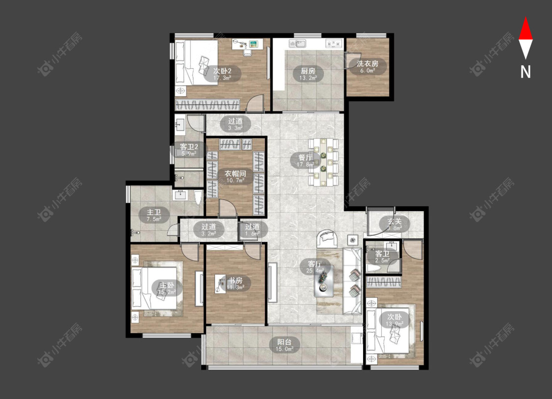 九洲新世界君玺 精装 5室2厅3卫 南向