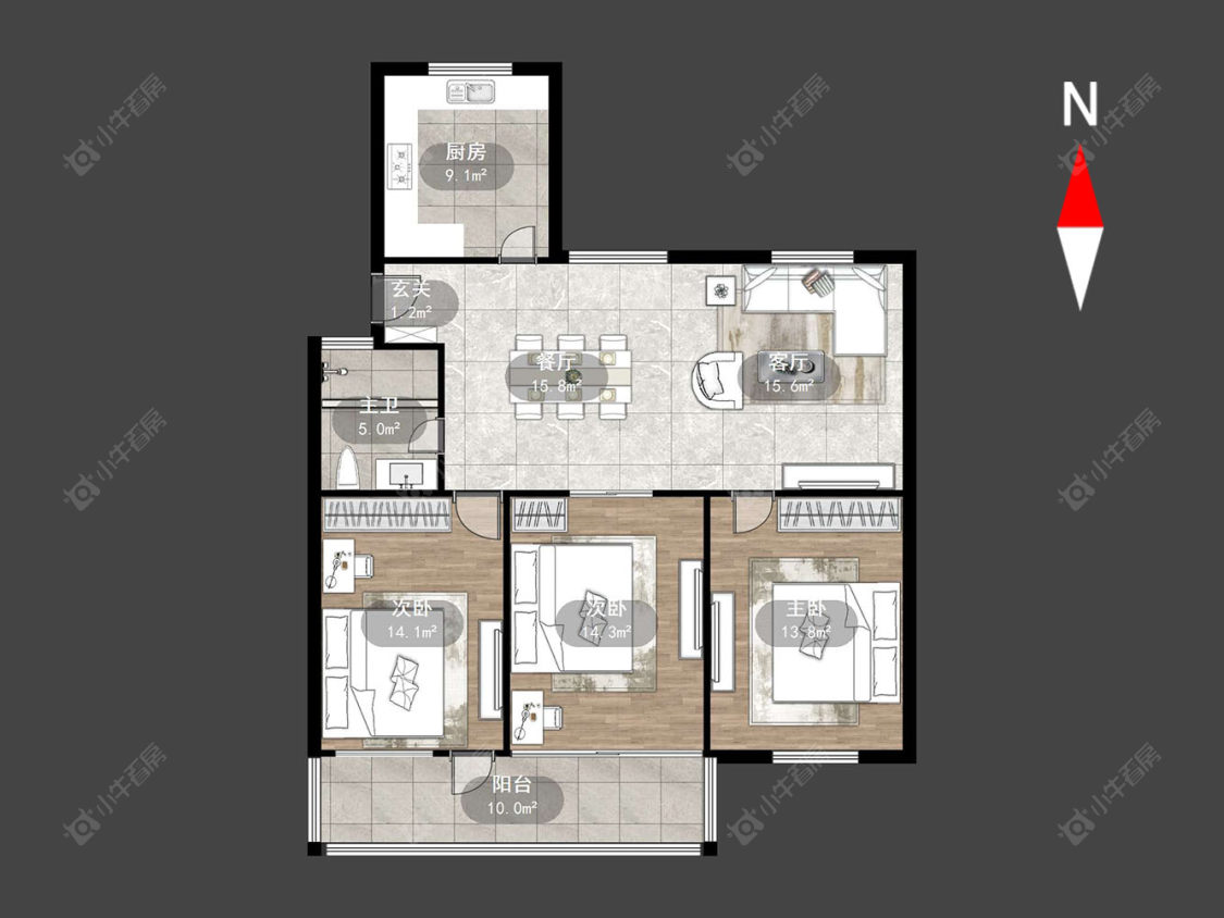 3室2厅1卫 | 118.07㎡ | 南